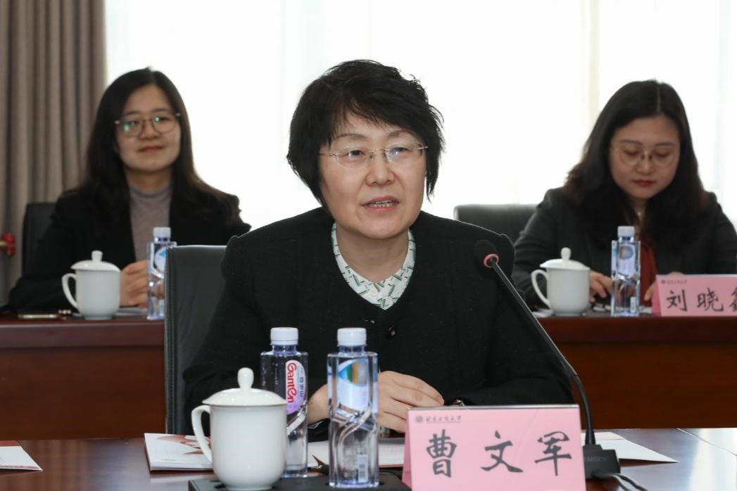 曹文军对北京工商大学的热情接待表示感谢,并高度肯定了双方长期以来合作取得的成效。她强调,首都师范大学与北京工商大学在办学理念、发展思路、人才培养等方面高度契合,未来合作前景广阔。她指出,面对新时代高等教育发展的新要求,希望两校进一步加强战略协同,聚焦学科建设、人才培养、教育教学等方面,推动优势互补、资源共享,共同探索高等教育高质量发展新路径,为首都“四个中心”建设贡献力量。