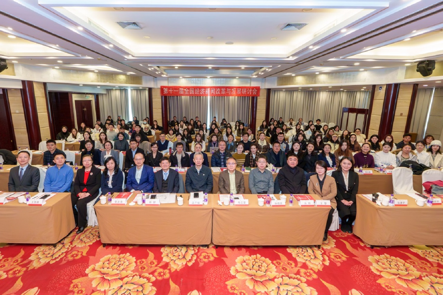 11月29日,由中国经济传媒协会指导、北京工商大学主办、我校语言与传播学院承办的第十一届全国经济新闻改革与发展研讨会在京召开。我校党委书记沈千帆出席会议并致辞。教务处处长王鲁娜,语言与传播学院党委书记刘影、院长王擎、副书记徐鑫、副院长张慧子出席会议。来自北京大学、中国人民大学、中国传媒大学、中央民族大学、上海财经大学、宁夏大学、浙江工商大学、安徽财经大学等高校的学者,与中国社会科学院、中国外文局、中央广播电视总台、北京商报、每日经济新闻、中国证券报等单位和媒体的专家共聚一堂,围绕“文明互鉴视野下的经济信息传播:变局、责任与创新”这一主题展开思想碰撞与深度交流,共话经济新闻改革与发展大计。
