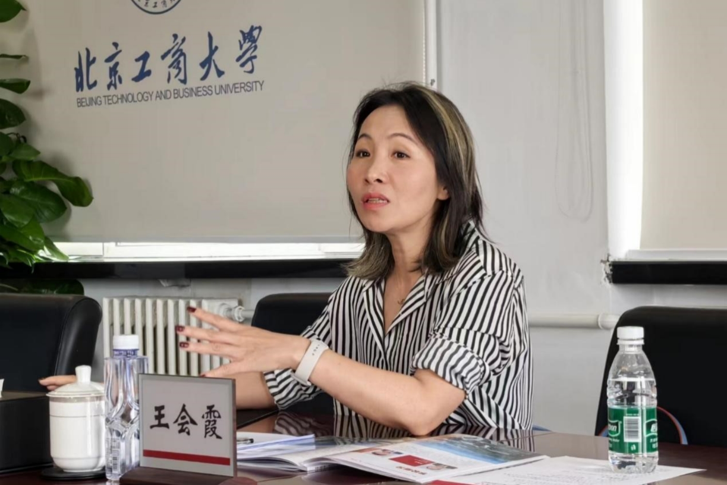 6月20日,美国乔治华盛顿大学统计系主任王会霞教授访问我校,就北京工商大学数学与统计学院与乔治华盛顿大学统计系“3+1+1”学生联合培养项目展开协商交流。学校党委副书记、校长郭建华参加交流会,会议由数学与统计学院党委书记周艳杰主持。