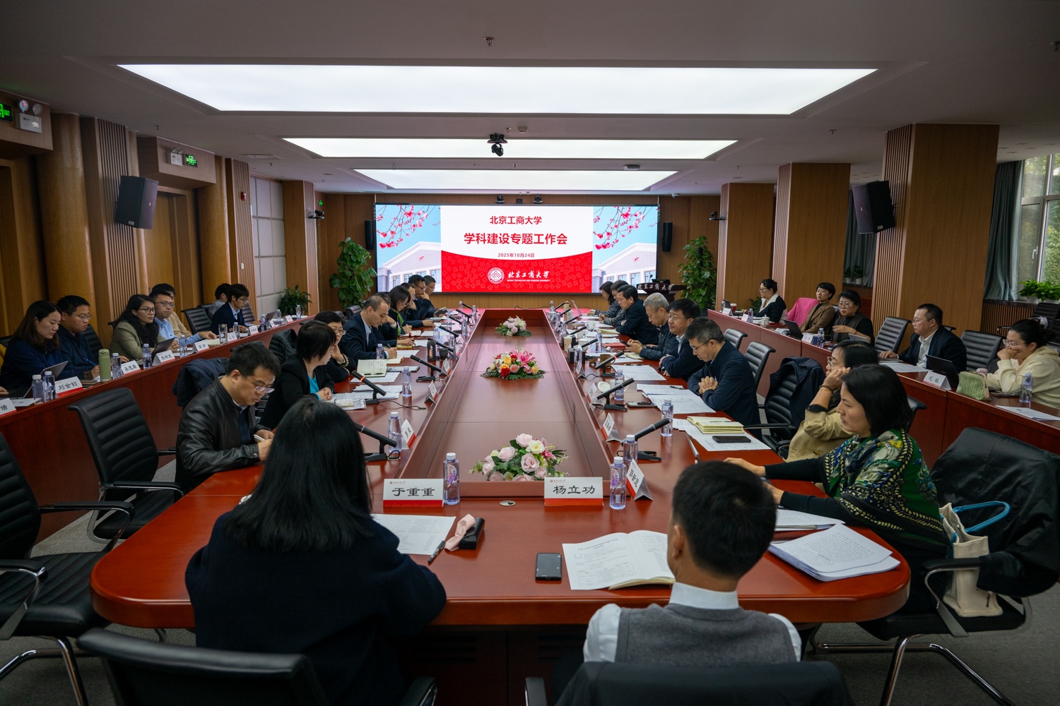 为贯彻落实学校“工商一体化”发展战略,扎实推进学科前瞻性战略性布局,10月24日,学校在阜成路校区召开学科建设专题工作会,听取各学院关于博士学位授权审核和迎接学科评估等工作推进情况的专题汇报。党委书记沈千帆,党委副书记、校长郭建华,党委常委、副校长徐丹丹、毛新述、寇红江、邓祥征出席会议,学科建设领导小组成员单位、学部主任及各学院负责人参加会议。会议由郭建华主持。