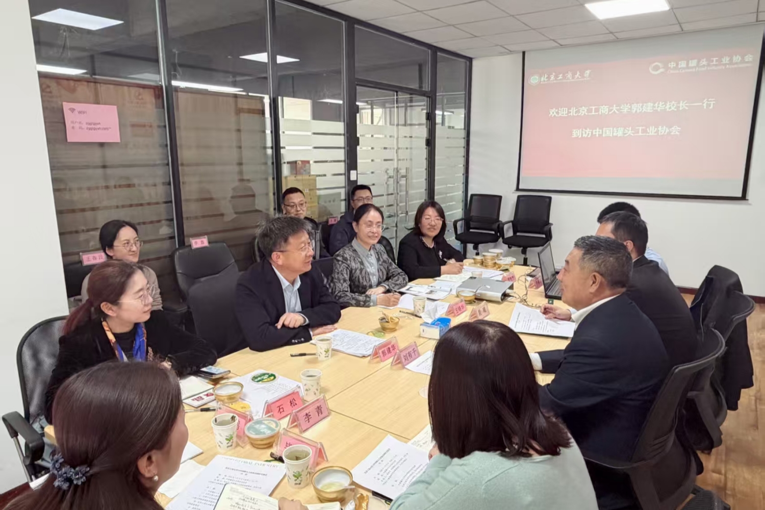郭建华对刘有千校友长期以来为学校及学院发展、校友联盟建设所作出的积极贡献表示衷心感谢。他系统介绍了学校近年来在办学治校、学科建设等方面取得的丰硕成果与鲜明办学特色,深入阐释了“工商一体化”发展战略核心内涵。他指出,学校坚持以“工商一体化”理念为引领,秉持“工中有商、商中有工、数智赋能”的学科融通理念,紧密立足经济社会发展实际需求,坚持人才培养与行业供需精准适配,着力构建“工-商-数”三元交叉学科群,以学科优势赋能技术创新成果转化与市场落地,持续深耕学科建设与人才培养工作,推动学校各项事业实现高质量发展,全力服务国家重大战略与首都经济社会发展大局。郭建华表示,希望以此次访企拓岗为契机,坚持以人为本、供需适配,深入了解行业需求,全力拓展优质实习实践平台和高质量就业岗位,实现校企合作共赢。他强调,统计学科是链接工科与商科、产业端与消费端的关键纽带,在人工智能赋能市场经济发展、助力“工商一体化”战略落地过程中具有不可替代的重要作用。他希望进一步深化与中国罐头工业协会的合作关系,聚焦人才培养体系建设深化协同合作,依托学校学科专业优势深度服务罐头行业发展,并对行业发展蓝皮书编制工作提出具体指导,力争打造学校服务行业发展的标志性成果,推动各项合作项目落地见效、长效推进。
