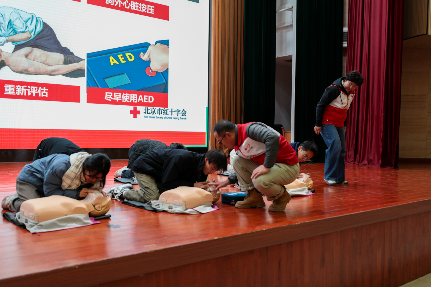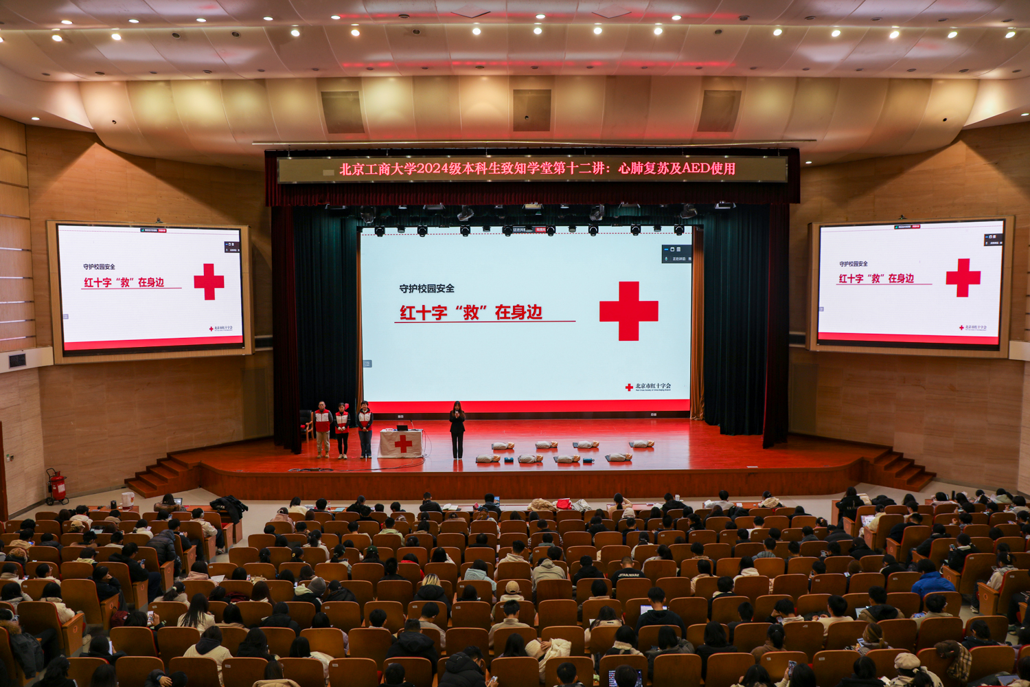 11月26日,北京工商大学良乡主校区开展2024致知学堂系列讲座第十二讲:心肺复苏及AED使用。原解放军三甲医院护士长、现北京市红十字会应急救护培训讲师、心理咨询师、健康管理师张海英开展“守护校园安全,红十字‘救’在身边”为题的讲座,带领同学们深入学习急救的各种方法,了解心肺复苏在现实生活中的运用,深化同学们对“红十字会的认识。