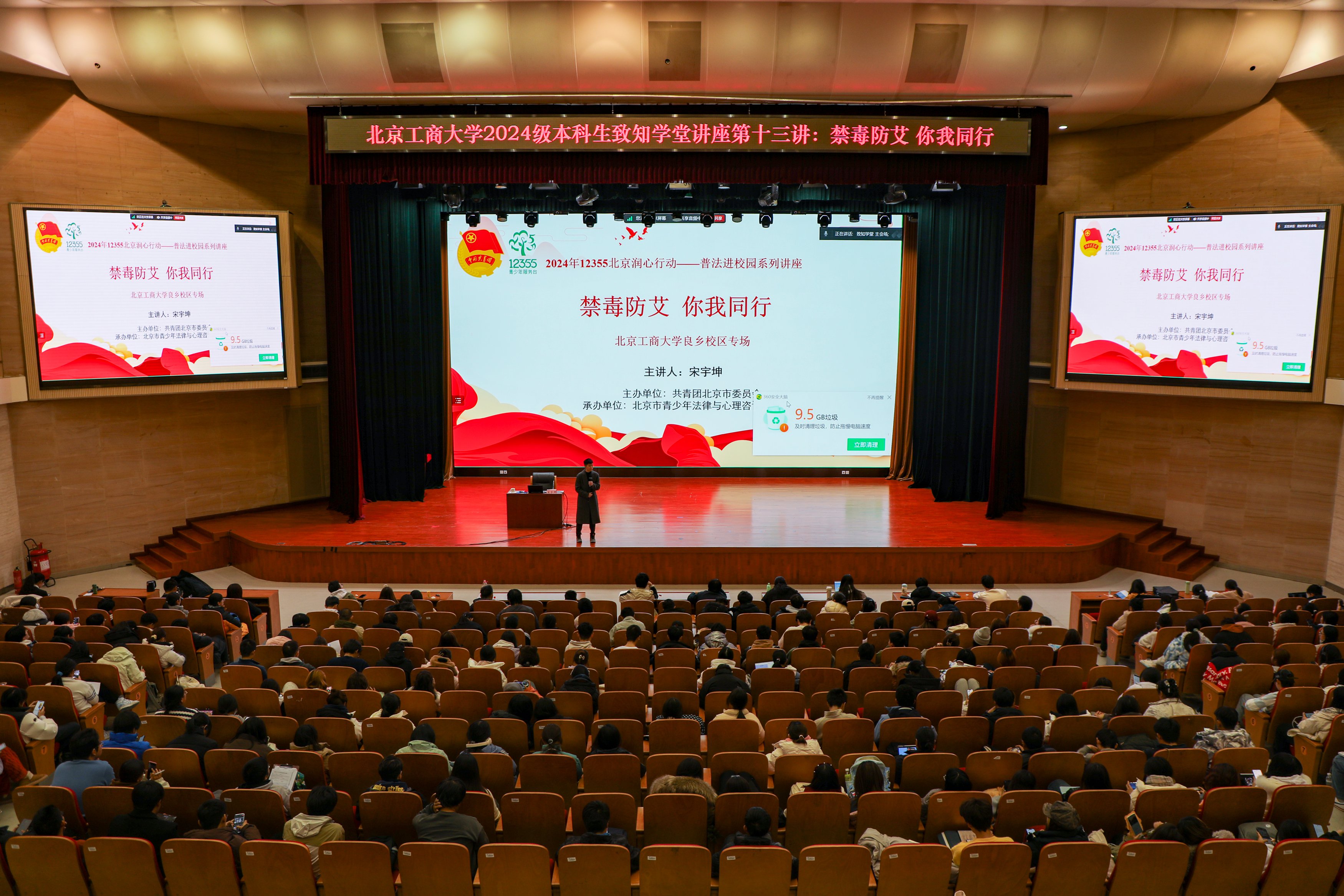 11月28日,致知学堂第十三讲“禁毒防艾,你我同行”在良乡主校区开讲。北京市青少年法律与心理咨询服务中心高校部副部长、首都高校青春红丝带社团工作领导小组办公室主管、北京市禁毒办禁毒公益讲师、北京市学校艾滋病防治宣传教育师资专家部成员宋宇坤开展普法进校园系列讲座,带领同学们深入了解毒品和艾滋病的危害,并呼吁大家坚决远离毒品,洁身自好,保护好自己及身边人的安全。