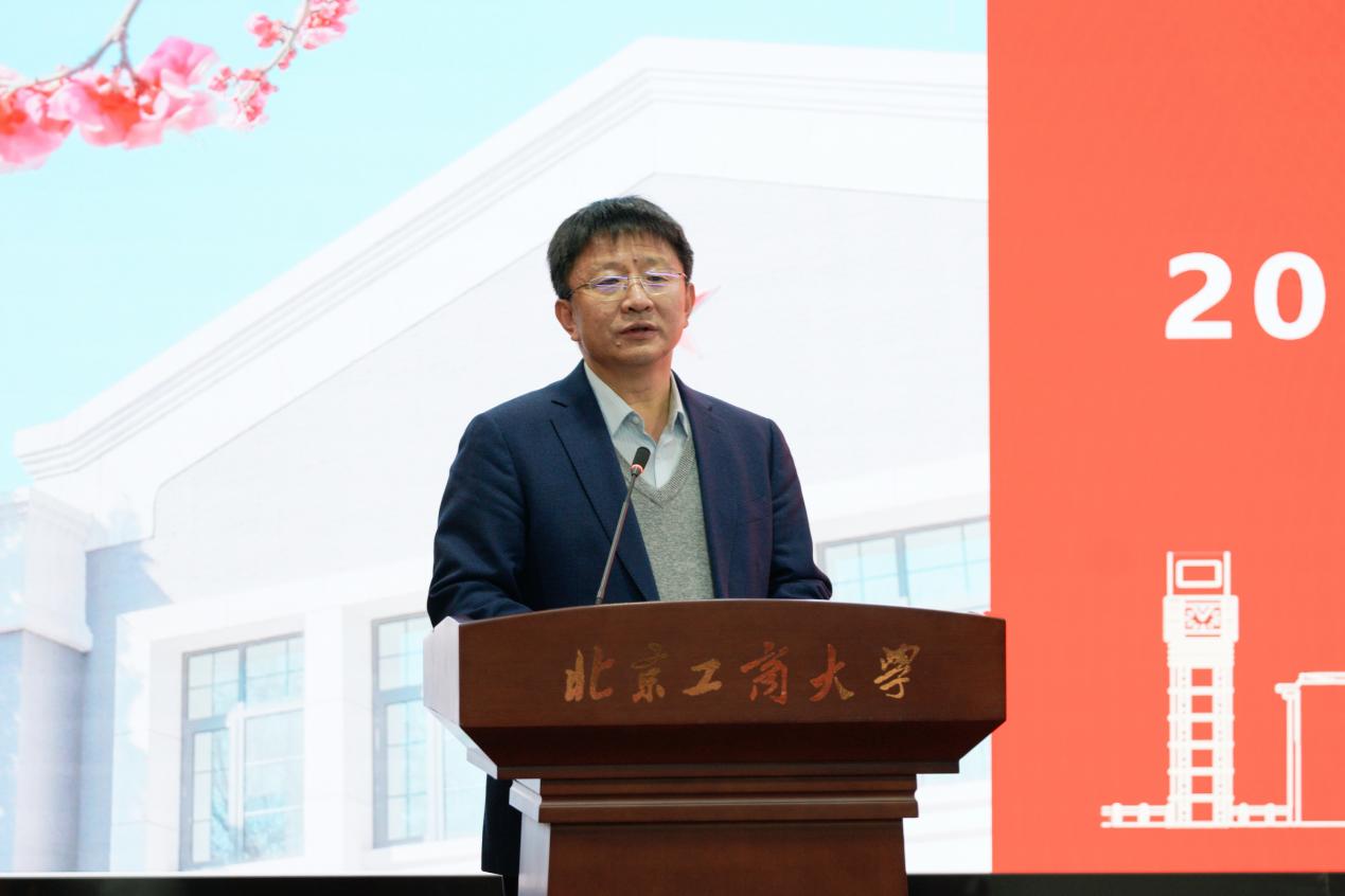 沈千帆首先代表学校对新教师以“工商人”身份加入致以热烈欢迎。他指出,学校始终把教师队伍建设放在首位,为教职工提供干事创业的优质平台与良好生态,在工作生活上秉持以人为本理念,为教职工安心从教、潜心育人提供保障。结合学校办学定位和时代要求,他对新教师提出三点要求,一是筑牢政治忠诚,把准育人方向,培养担当民族复兴大任的时代新人;二是锤炼过硬本领,服务发展需求,聚焦科研前沿,对接国家战略与首都发展,在产学研融合中成就事业;三是恪守师德规范,涵养高尚人格,以身作则,成为学生为学、为事、为人的“大先生”。最后,他鼓励新教师将个人理想融入国家发展和学校建设大局,为学校 “双一流” 建设、服务新时代首都发展及中国式现代化贡献力量。