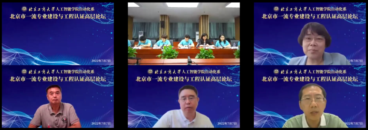 7月7日下午,由我校人工智能学院自动化系主办的北京市一流专业建设与工程认证高层论坛在阜成路校区召开。学校党委常委、副校长刘敏华出席论坛并致辞。清华大学自动化系党委书记兼教育部高等学校自动化类专业教学指导委员会秘书长、中国工程教育专业认证协会电子信息与电气工程类专业认证委员会委员张佐研究员,北京科技大学自动化学院党委书记兼中国工程教育专业认证协会电子信息与电气工程类专业认证委员会认证专家李擎教授,北京工业大学信息学部主任兼北京人工智能学会理事长李晓理教授,北京石油化工学院信息工程学院副院长兼中国自动化学会注册级工程师纪文刚教授应邀出席。人工智能学院院长于重重、副院长孙晓荣、科研院自然科学处副处长赵峙尧参加会议,自动化系全体教师参加活动。会议以线上线下相结合的方式开展,论坛由北京市一流专业建设点自动化负责人刘翠玲教授主持。