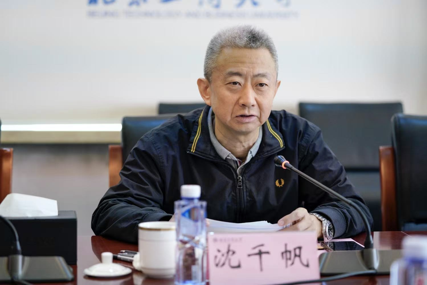 两岸大湾区产业联盟秘书长陈椿茂、福州海峡两岸和平统一促进会理事刘彦雯;党政办公室主任王晓华,国内交流与合作处处长、阜成路管委会副主任、阜成路校区管委会直属党支部书记张晓磊,国际交流与合作处(港澳台办公室)处长兼国际教育学院院长贺冬萌、继续教育学院院长陈薇等参加了此次会议。