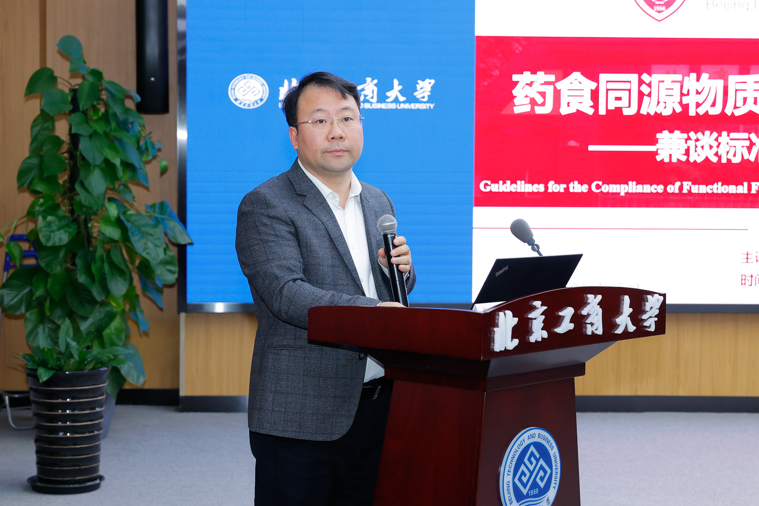 国家食品安全风险评估中心标准三室主任张俭波在致辞中表示,食品安全标准是落实“四个最严”要求的根本前提与重要基础。近年来,在国家卫健委的领导下,中心着力强化多部门、多领域协同的标准制修订工作机制,推动我国食品安全标准体系持续完善。我国作为国际食品添加剂法典委员会主持国,正深度参与并积极推动相关国际标准制定工作。随着食品新技术、新工艺、新业态的涌现,应对新型食品安全风险,迫切需要既懂法规又通技术的“法工融合”型复合人才。他谈到,北京工商大学作为国家卫健委食品安全与营养健康“1+2+8”战略合作机制成员单位、国家食品安全风险评估中心技术合作中心,去年还成功入选国家卫健委食品安全风险评估与标准研制特色实验室,在食品安全标准研究等方面做出显著贡献。他希望以此次研讨会为契机,进一步深化双方在人才培养领域的合作,推动更多具备跨学科背景的复合型人才参与国家食品安全政策、法规与标准的转化与落实工作。