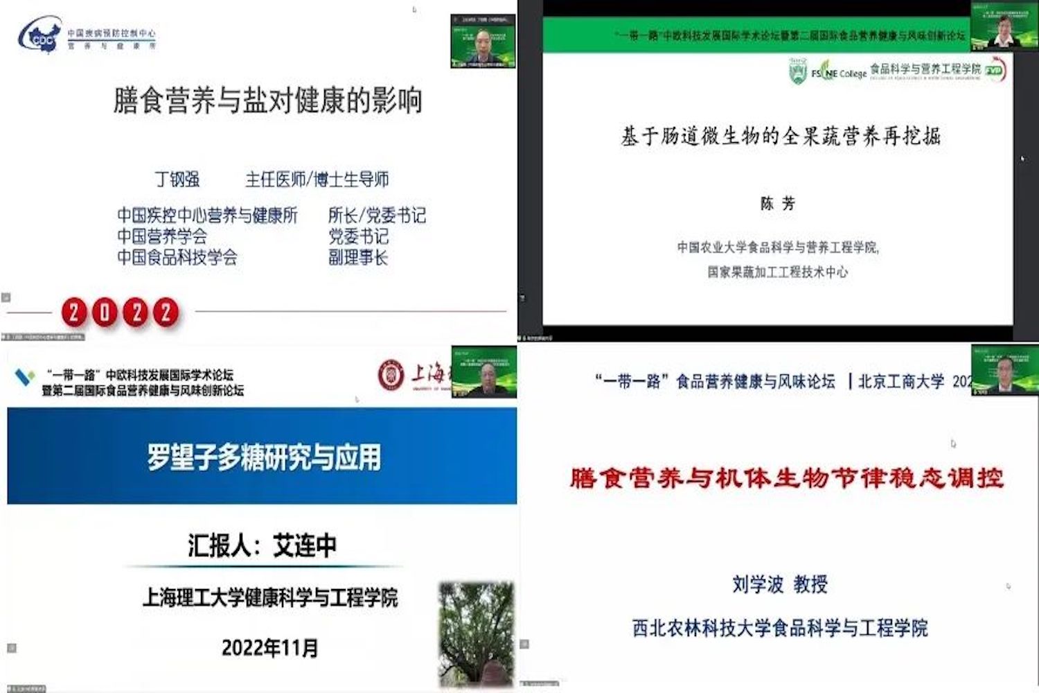 国家食品安全风险评估中心李宁主任对营养标签进行了解读,在强制标准营养素基础上增加对糖和饱和脂肪酸的强制性标识要求,提出进一步完善标准体系建设,引领营养健康升级。中国疾病预防控制中心营养与健康所所长丁钢强提出,钠摄入过多已成为全球疾病负担的主要因子,应该重视钠与健康的关系,改变人们的用盐习惯。西北农林科技大学刘学波教授分享了膳食营养与机体生物节律稳态调控方面研究进展,探讨了茶多酚对肠道基因的节律调整,对脑组织的功能改善和生物钟功能基因表达方面的改善作用。上海理工大学艾连中教授探讨了罗望子多糖的制备和结构表征,提出了罗望子多糖在米面制品改良剂、冰晶稳定剂及在再造烟叶中的巨大应用潜力。中国农业大学陈芳教授倡议关注肠道微生物在连接膳食营养和人类健康中的关键桥梁作用,从肠道微生物角度探讨了果蔬新功能。中盐集团董事长李耀强指出,适度“减盐”是维护健康的重要举措,应大力推广使用“低钠盐”,共同推动全民形成健康用盐的观念。