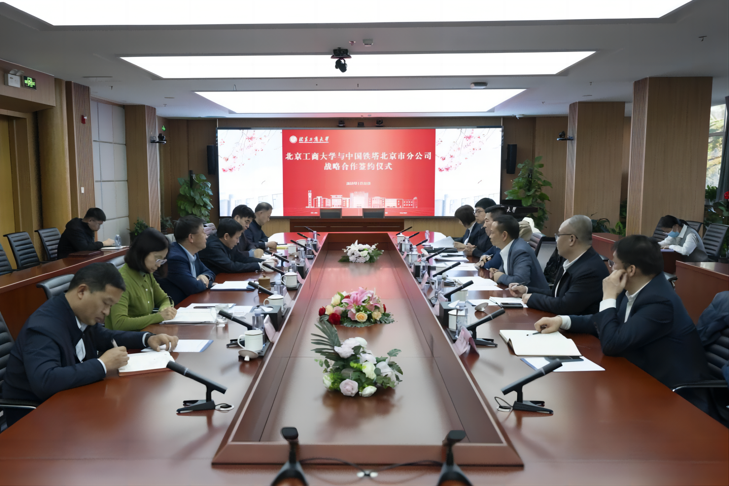 铁塔北京市分公司行业拓展部、能源经营部、综合部、通信发展部,学校党政办公室、国内交流与合作处、公共事务处、保卫处、校园建设处等部门主要负责人陪同参观并参加签约仪式。