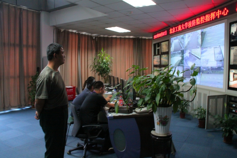 见到魏江老师的时候,他正注视着学校钟楼的几十个监控录像,身边是三十几部对讲机,以便应对即将到来的2013级新生报到。魏江老师来到良乡校区已经九年的时间了,有人说,魏老师和他的团队是北工商校园中的“常驻者”。