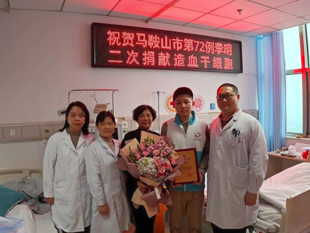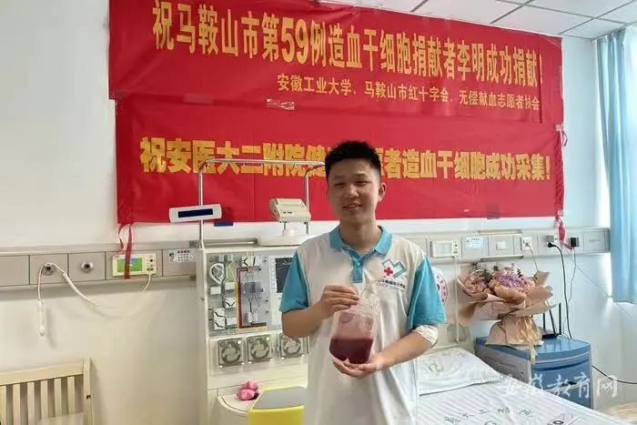 两年后的一个春日,正在工厂测试毕业设计产品性能的李明接到了中华骨髓库马鞍山站工作人员的来电:“您的HLA配型与一名白血病重症患者吻合。”惊讶、忐忑、紧张、欣喜……几种情感瞬间涌上了李明的心头,他深知,配型成功的概率只有万分之一甚至几十万分之一,这几乎是受捐者延续生命“唯一的机会”。李明感到身上有一种为受助者带来生命之光的责任,他当即毫不犹豫地表示:“我同意进行骨髓捐献!”