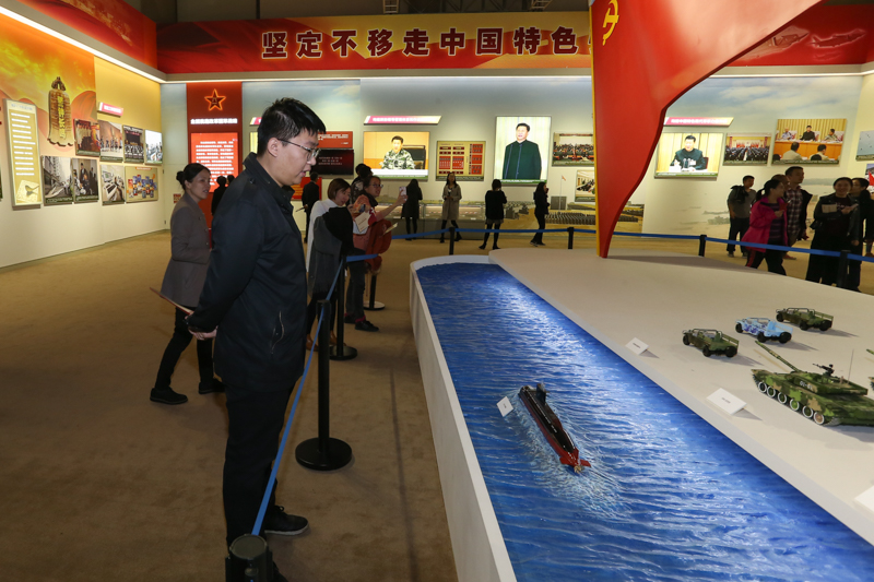 展览气势恢宏、内容丰富。参观的同志们认真地观看图片、文字、视频、实物、模型,参与互动体验,产生了强烈共鸣。大家边看边交流,深深为祖国在近五年取得成就感到震撼和自豪。不少人通过新媒体发布观展后激动、自豪的心情,“厉害了,我的国”“震撼”“不忘初心跟党走”“砥砺奋进,为祖国自豪”“我爱你中国”等话语刷屏朋友圈。大家谈到,观看这次展览,深切地感受到五年来社会主义现代化建设取得的辉煌成就,看到了中国制造到中国智造、中国创造的飞跃,也亲身体会到了五年来的变化,老百姓的幸福感越来越高,伟大祖国欣欣向荣、繁荣昌盛。在中华民族向着伟大复兴目标前进的道路上,我们将牢记使命、砥砺奋进,为祖国的美好明天努力工作、贡献力量。