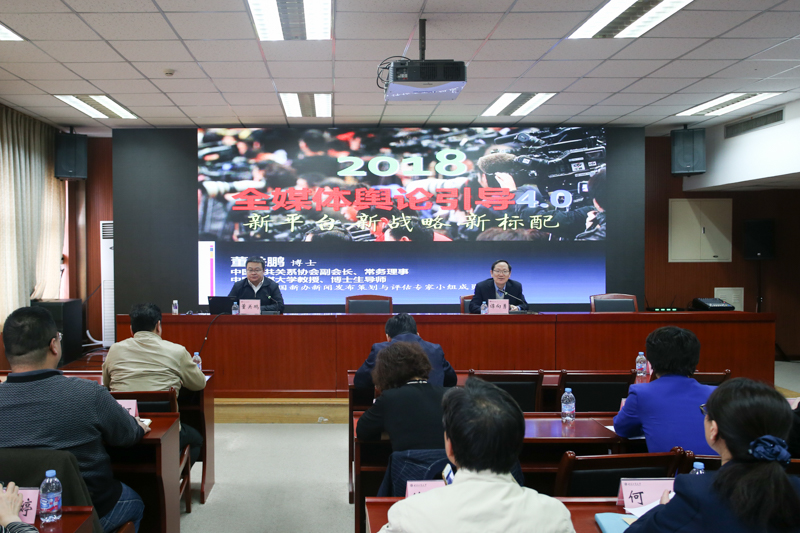 为深入学习贯彻党的十九大精神,提高新闻舆论宣传工作水平,4月11日,学校组织处级以上领导干部学习贯彻党的十九大精神集中培训,邀请中国传媒大学教授董关鹏作题为《全媒体舆论引导的新平台、新战略、新标配》的专题报告。学校党委理论中心组成员、全体中层干部参加培训。培训会由党委书记谭向勇主持。