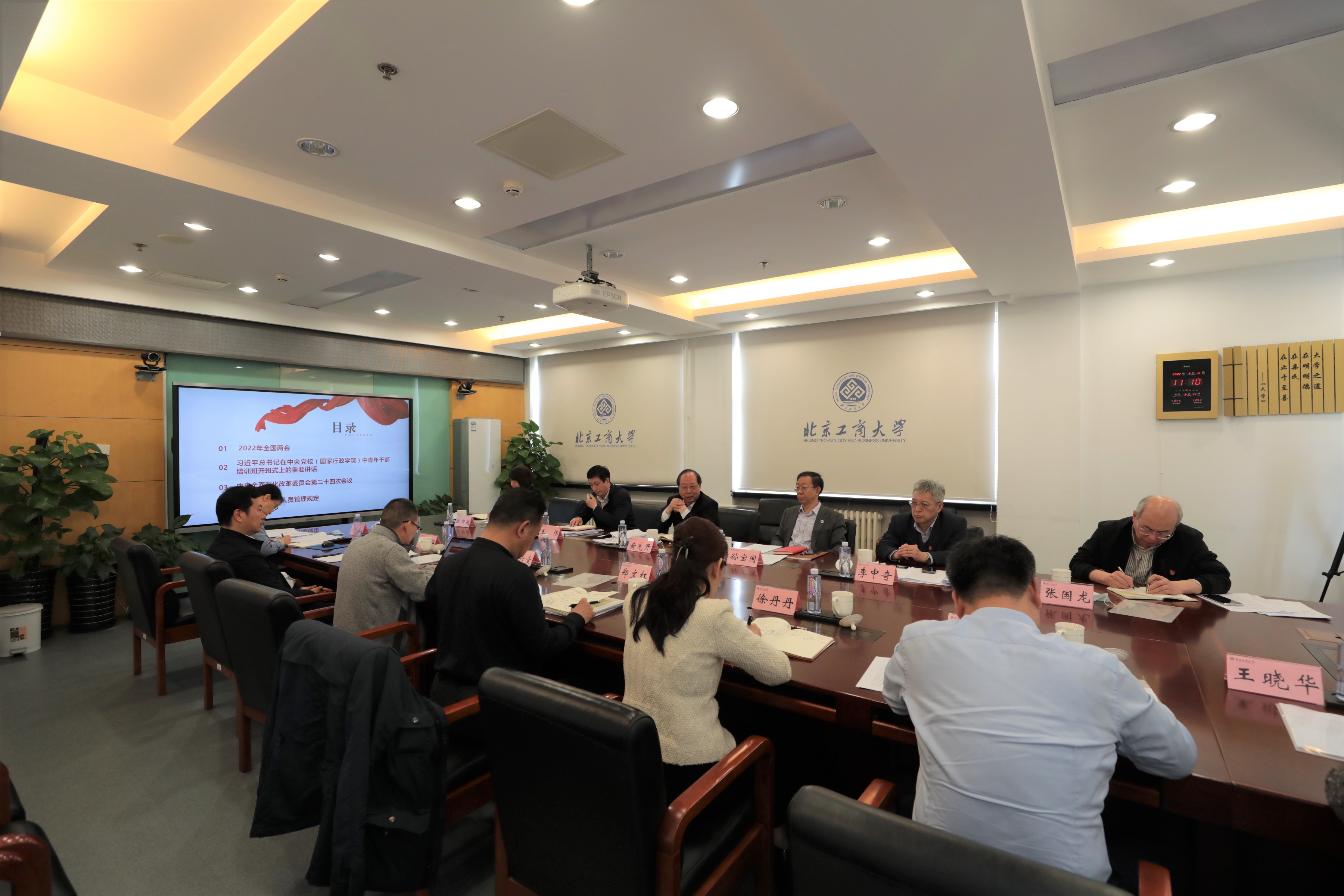 党委书记黄先开在总结讲话中指出,一是今年的全国两会是在中国共产党成立100周年、党的十九届六中全会之后,党的二十大召开之前这一特殊时间节点举行的一次重要会议,面对国际形势深刻复杂变化、百年变局与世纪疫情交织叠加,习近平总书记两会期间重要讲话精神为奋进新征程、建功新时代坚定了信心,指明了方向,要深刻学习领会,坚决贯彻落实。二是要心怀“国之大者”,聚焦国家战略,贯彻落实“四个面向”的战略要求,吃透把准国家和行业发展战略需要和政策导向,要准确思辨、科学应变、主动求变,全面谋划学科布局和专业建设,结合学校发展实际,坚持商科做强工科做精,进一步加强基础学科人才培养。三是习近平总书记在中央党校中青年干部培训班开班式上的重要讲话饱含对年轻干部的殷切期望,为加强新时代干部队伍建设提供了行动指南,为学校干部教育培养指明了方向和路径,具有极强的针对性和指导性,要进一步加强对中青年干部的选拔、培养、教育、管理等工作,不断提升干部队伍质量。全校上下要统一思想,凝聚共识,齐心协力,领导带头,狠抓落实,全力推动学校各项工作取得新突破,加快推进学校“双一流”建设,以实际行动和优异成绩迎接党的二十大胜利召开。