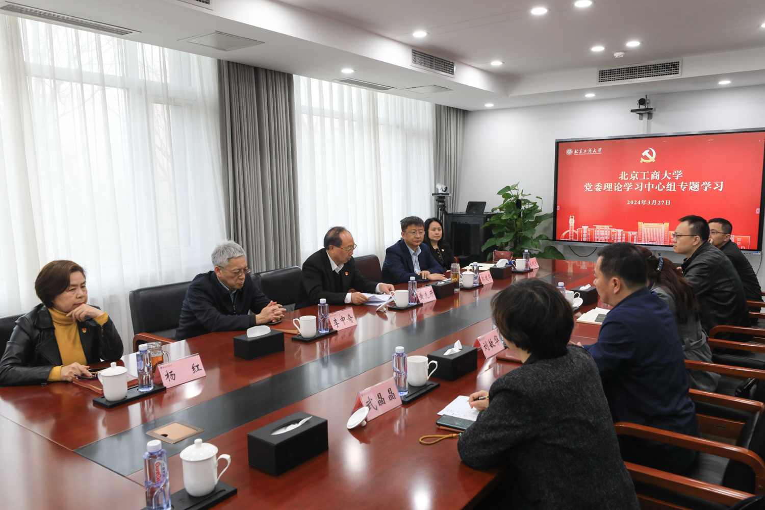 党委书记黄先开结合中共中央办公厅、国务院办公厅印发的《深入推动高质量发展实施方案》《加快构建新发展格局行动方案》等文件精神,深刻把握学校当前所处的历史方位和发展的阶段性特征,分析比较了世界一流大学的发展轨迹,强调要聚力高等教育高质量发展,以前所未有的责任担当精神、干事创业精神、改革创新精神和勇于斗争精神,全面开创高水平研究型大学建设新局面,为中国式现代化作出更大贡献。一是在政治上把好方向。习近平总书记在中共中央政治局第五次集体学习时强调指出,“建设教育强国,龙头是高等教育”。高水平研究型大学则是决定高等教育发展高度的“塔尖”,因此,必须以坚持党对教育事业的全面领导为根本保证。历史和实践也证明了,唯有不断加强和改善党的领导、不断提高党的建设质量,才能克服一个又一个困难、跨越一道又一道难关,保证学校事业健康顺利发展。学校正在加快推进高水平研究型大学建设,必然会遇到新的困难和挑战,有些矛盾甚至比以往任何时候都更加突出和尖锐。我们必须切实担负起管党治党、办学治校主体责任,加快构建适应新发展阶段、新发展理念、新发展格局要求的高质量党建工作体系,强化高质量发展的政治保证和组织支撑。二是在战略上管好大局。以高质量党建引领学校事业高质量发展,核心是推动党建与各项业务工作深度融合。学校第三次党代会明确提出了“商科做强、工科做精、工商融合、双轮驱动”的办学思路,并从战略角度提出了“三步走”策略,为加快推进“双一流”建设指明了具体前进方向。我们务必要牢固树立系统观念,把做好党建工作与学校改革发展稳定、完成党和国家重大战略任务紧密结合起来,同思想政治工作、人才培养、管理服务等一体推进,同谋划、同部署、同落实、同考核。三是在决策中确保落实。推动高质量发展,重在实干、关键在落实。一方面,要坚持民主集中制原则,落实“三重一大”决策制度,健全领导班子议事和决策机制,做到以宽阔胸襟发扬民主、以科学方法正确集中,充分尊重每个领导班子成员的意见,发挥每个人的积极性和创造性。另一方面,要不断推动各基层党组织聚焦高质量发展观大势、谋大局、抓大事、挑大梁,发挥好二级党组织引领把关和党员示范带头作用,不折不扣落实好学校高质量发展各项举措部署。四是在创新中促进发展。创新是第一动力,唯有改革创新,才能更好践行新发展理念、破解发展难题、增强发展活力、厚植发展优势。我们必须要立足教育、科技、人才一体推进的大战略上,加快构建人才培养新格局,着力培养拔尖创新型人才。充分认识发展创新在加快中国式现代化进程、建设教育强国中的突出作用,大力加强高质量党建对创新发展的引领作用,坚持面向科学技术前沿、面向经济主战场、面向国家重大需求等,通过高质量的党建工作服务支撑国家创新驱动发展战略,在服务新时代首都发展中开创新格局。