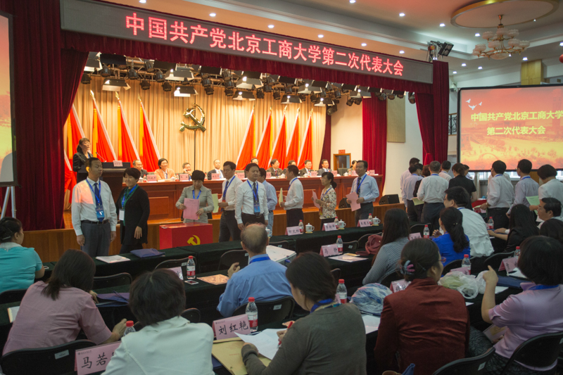下午15:00,大会进行选举。经过无记名投票,共25名同志当选为中国共产党北京工商大学第二届委员会委员,7名同志当选为中国共产党北京工商大学第二届纪律检查委员会委员。