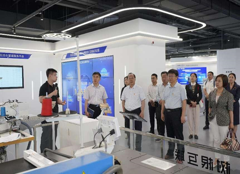 最后,学校党委理论学习中心组成员一行参观了国家工业互联网大数据中心和工业互联网测试体验中心,深入了解了装备制造业数字供应链平台、工业数字化碳管理公共服务平台、中小企业数字化转型服务平台运行模式,通过基于工作互联网平台的智能化检测、基于工作互联网平台的数字孪生、基于工作互联网平台的网络化协同等模块全方位了解中国互联网领域的先进技术和应用。