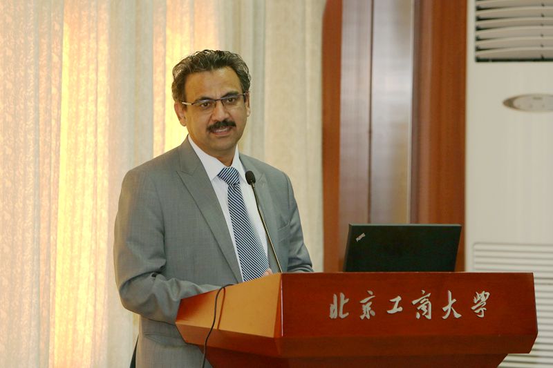 谭向勇在致辞中表示,北京工商大学非常重视与巴基斯坦高校的交流与合作,自2013年以来,共招收巴基斯坦留学生21人。今后学校将积极创造条件,支持巴基斯坦科技与经济研究中心的建设和发展,发挥学校跨学科、跨领域的软硬件条件,通过一系列优势互补、互利双赢、务实的合作,为“一带一路”提供强有力的科技与经济的咨询、交流与服务,促进中巴两国技术转移,促进民间科技交流,更好地推动两国创新型和开放型经济发展,建设中巴科技、经济、教育等多领域合作的美好未来。