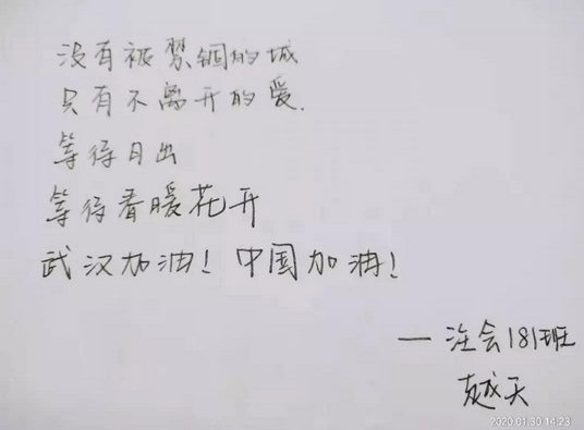 武汉加油!中国加油!奋战在一线的白衣天使们加油!我们所有人都是你坚强的后盾!(自动182 陈震洋)