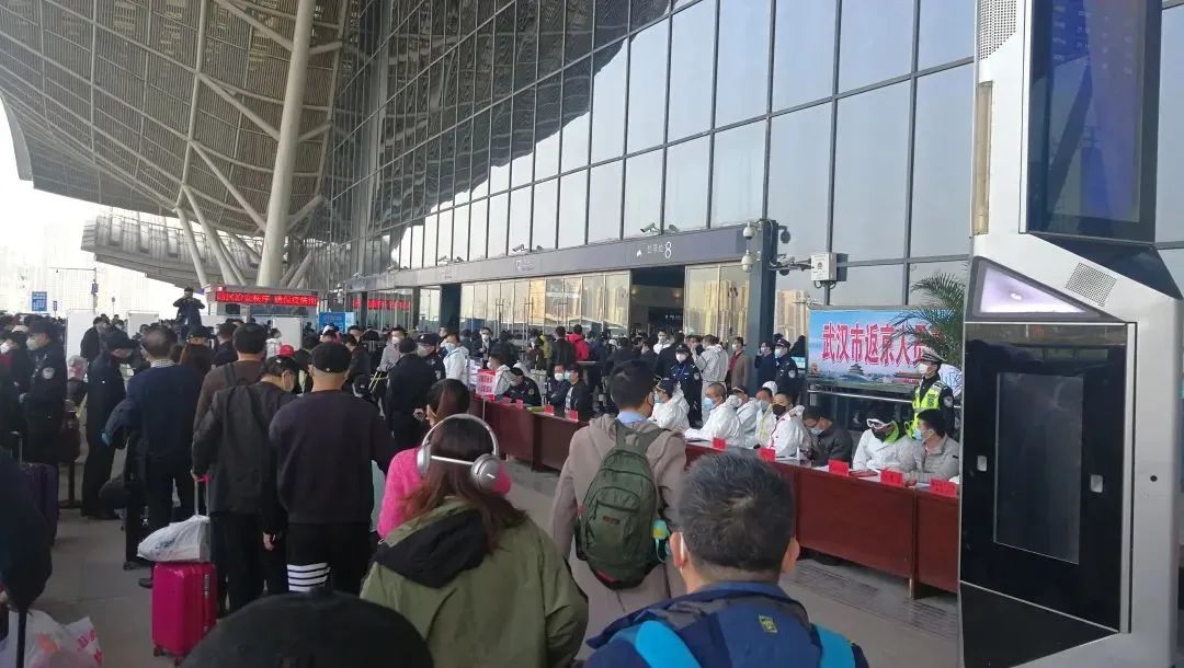 终于到了西站,下了车,我突然发现,我变成了一线的“战疫”英雄,无数家媒体一拥而上,问我此时此刻的心情与感受,回答完媒体的最后一个提问后,我终于跟随大部队走出了火车站平台。