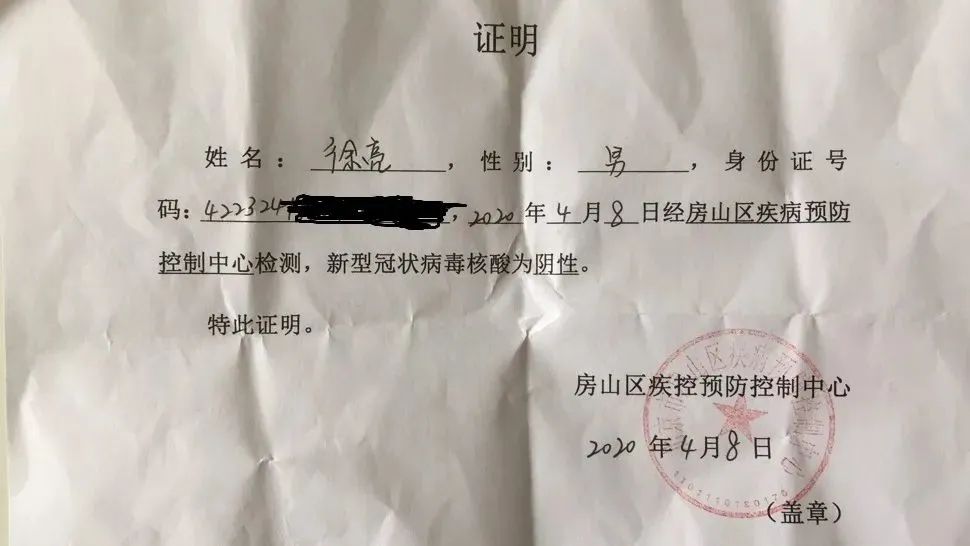 “欢迎回家”,多么熟悉的味道,工作人员早早在站台等候,我们听从指挥安排,由专人引导离汉返京旅客经由专用通道和出站口有序出站,来到房山区接站指定区域,随后乘坐大巴经历1个多小时来到房山区的一个酒店入住等待核酸检测,工作人员加班加点检测,11:30左右检测结果出来为阴性,随后拱辰街道工作人员不辞辛苦安排专车接我回到所住小区。经过体温检测、实名验证和登记后,凌晨12:30终于回到了期盼已久的家。