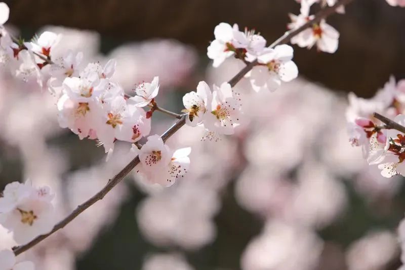 路边盛开的紫叶李和杏花映入眼帘,女儿开玩笑地说:“我们又要过一次2020年的春天了,真好!”