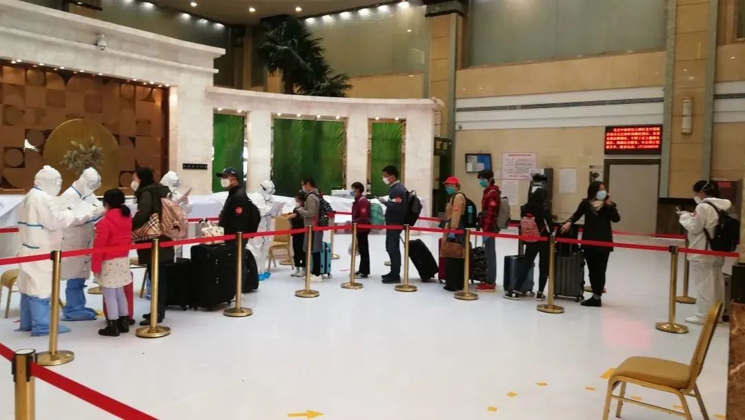 小区的工作人员在小区门口接到人后,登记、测量体温,送至家中,给家门贴上封条或安上摄像头或电子报警门签。至此开始居家隔离14天。购买生活需要的物资、扔垃圾等均需要联系社区工作人员上门送取。