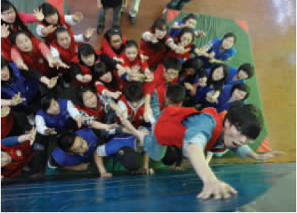 多名学生先后参加心理体验。图为学生正在上心理素质拓展体验课。