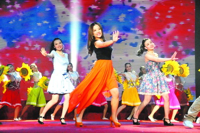 北京工商大学的学生们正在表演歌曲串烧《怒放的青春》。