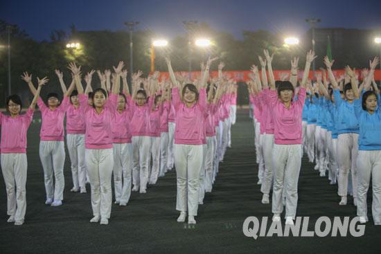 北京工商大学近千名女大学生在校运会开幕式上表演体能热力操