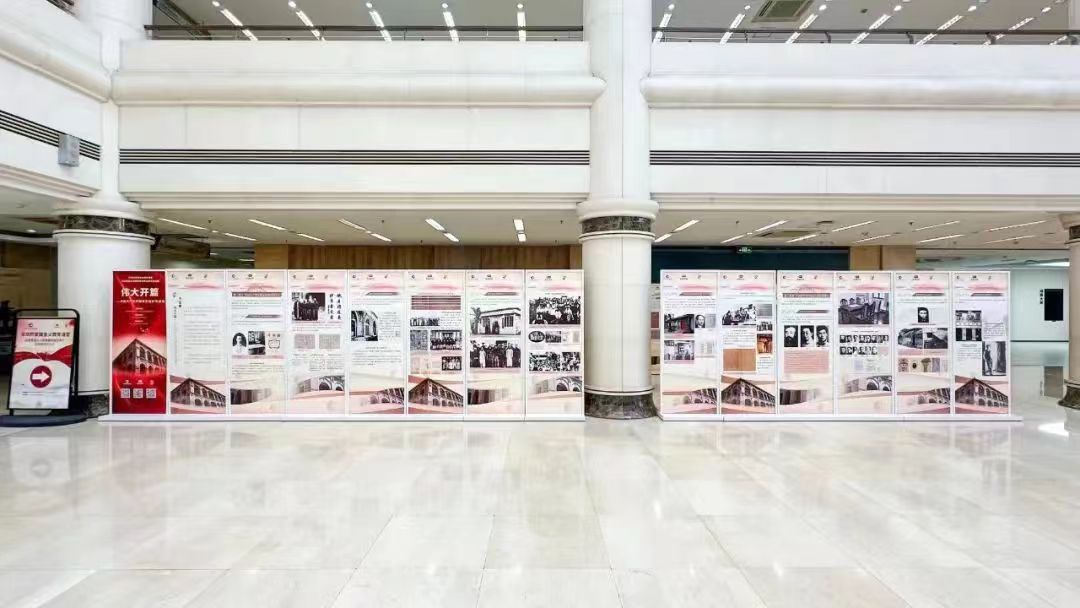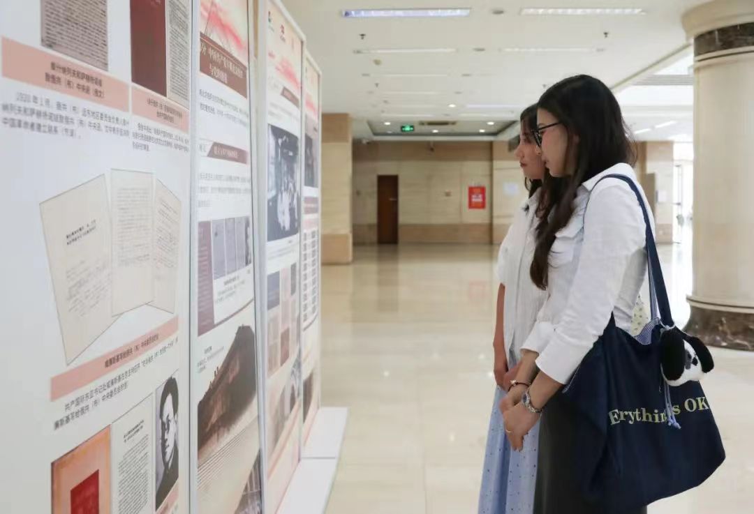 “北京有着悠久的历史积淀和灿烂的革命文化,是五四运动的爆发地,是中国共产党的主要孕育地之一。中国共产党从这里出发,踏上了争取民族独立、人民解放和实现国家富强、人民幸福的伟大征程。”北京工商大学图书馆二层大厅内,北大二院旧址(原北大数学楼系)讲解员李雪菲向学生讲述着中国共产党的伟大开篇。展览中,一张“亢慕义斋”阅览室的老照片,吸引了不少学生驻足观看。北京工商大学设计与艺术学院设计专业24级研究生新生李晓彤表示,作为新时代青年,要勇于肩负起责任与担当,充分利用自身所学的专业知识,奋力书写新时代青春华章。