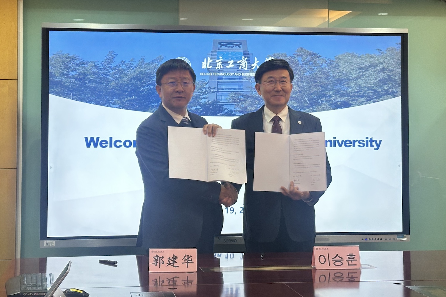 郭建华对李昇勋一行来访我校表示热烈欢迎。他围绕我校的发展历程、人才培养、科学研究、学科建设四大板块介绍学校整体情况,同时详细介绍了学校“工商一体化”的办学理念与实践成果。他表示,北京工商大学和韩国世翰大学在教育教学、科学研究、社会服务、联合培养等领域联系紧密,双方能够实现优势互补、互利共赢,希望两校能够在建立校际合作关系的基础上,进一步深化交流,在国际化人才培养和国际化师资培训等方面产出标志性成果。