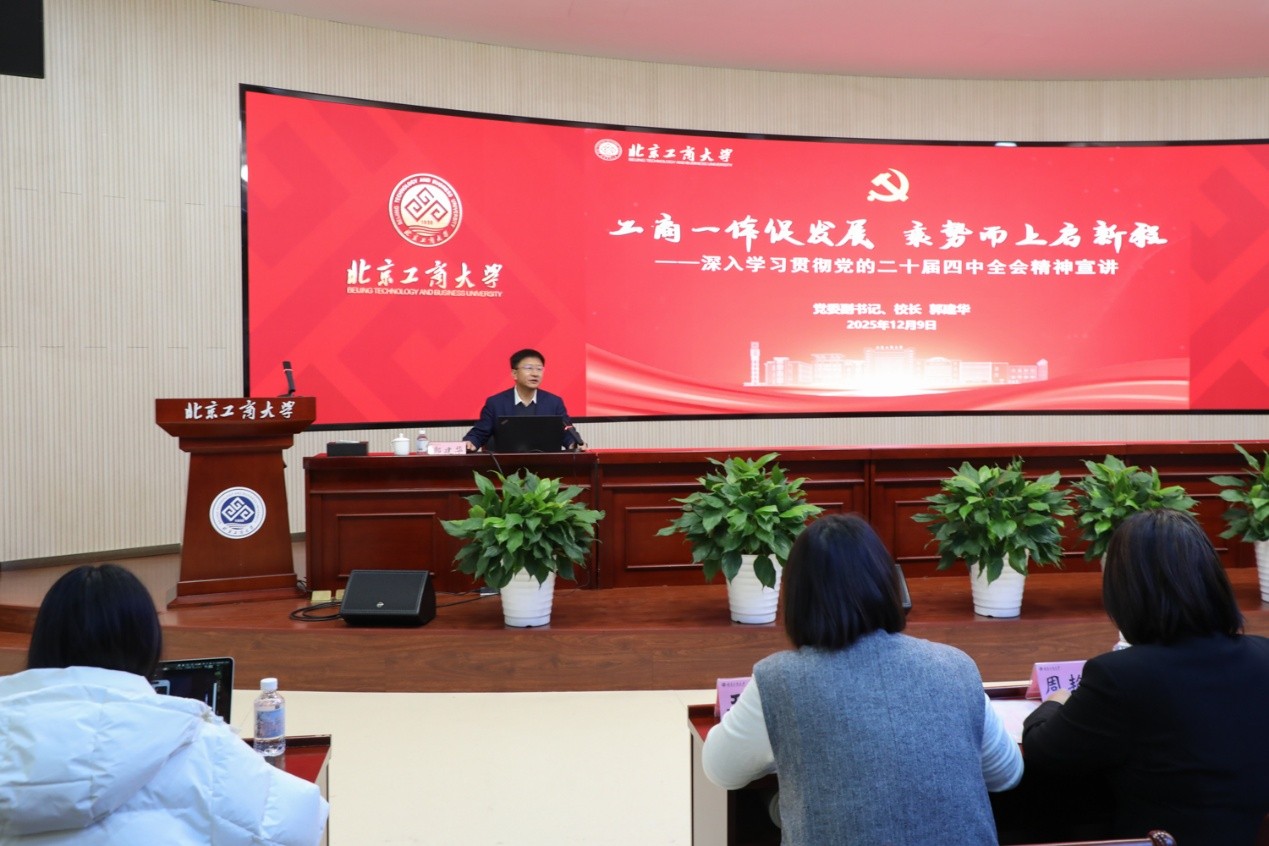 本次授课,郭建华紧密联系“时”与“势”,将理论与实践相结合,并充分联系北京工商大学“工商一体化 奋进双一流”的实际,旁征博引、深入浅出地阐释了党的二十届四中全会精神,使师生经受了一次深刻的思想淬炼和精神洗礼。大家一致表示,将以此次学习为契机,进一步统一思想、凝聚共识、增强干劲,切实把学习成果转化为推动学校高质量发展、服务国家战略和首都建设的实际行动。