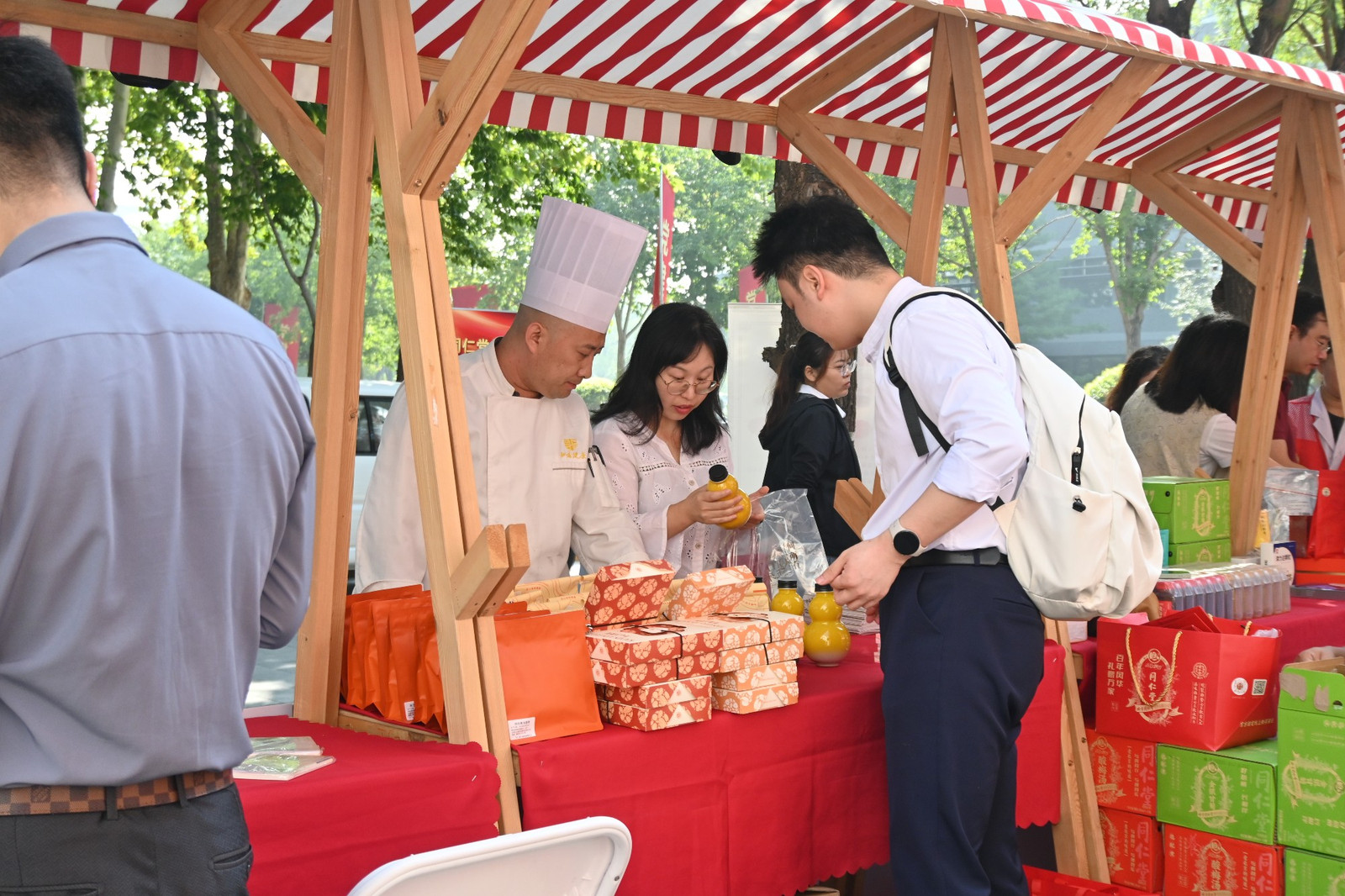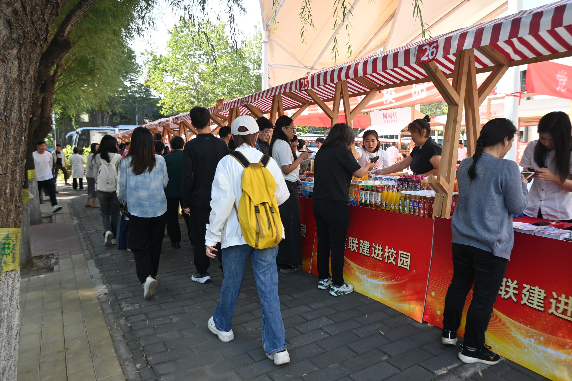 北京北冰洋、一轻食品、同仁堂健康药业等单位带来优质产品展示与优惠售卖,涵盖食品、饮品、健康产品等,让师生足不出校就能享受联建单位的优质服务。
