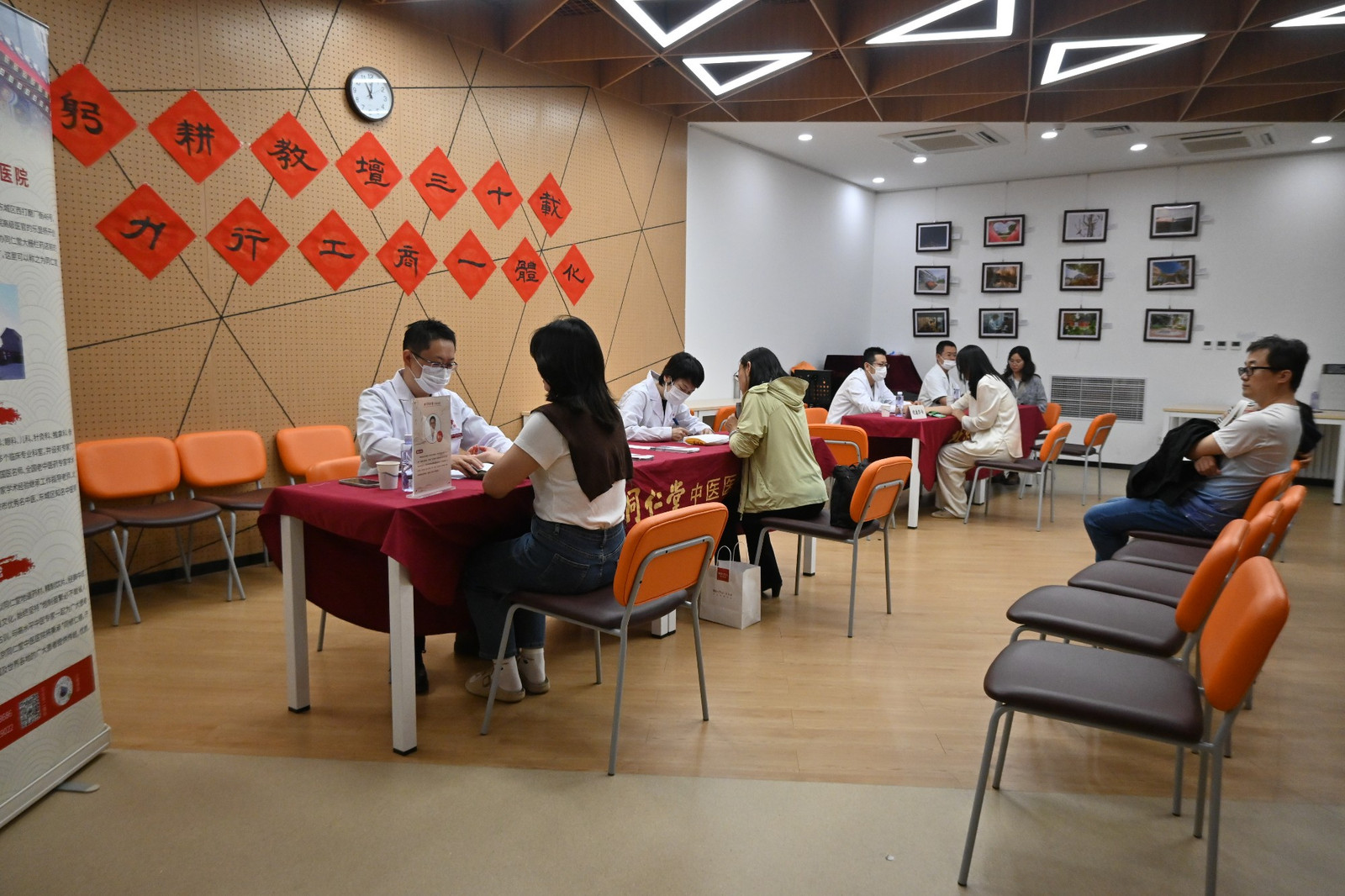 “党建引领产业创新联建机制”成员单位北京同仁堂组织中医养生专家开展健康义诊咨询,为师生提供脉诊、体质辨识、养生建议等服务。