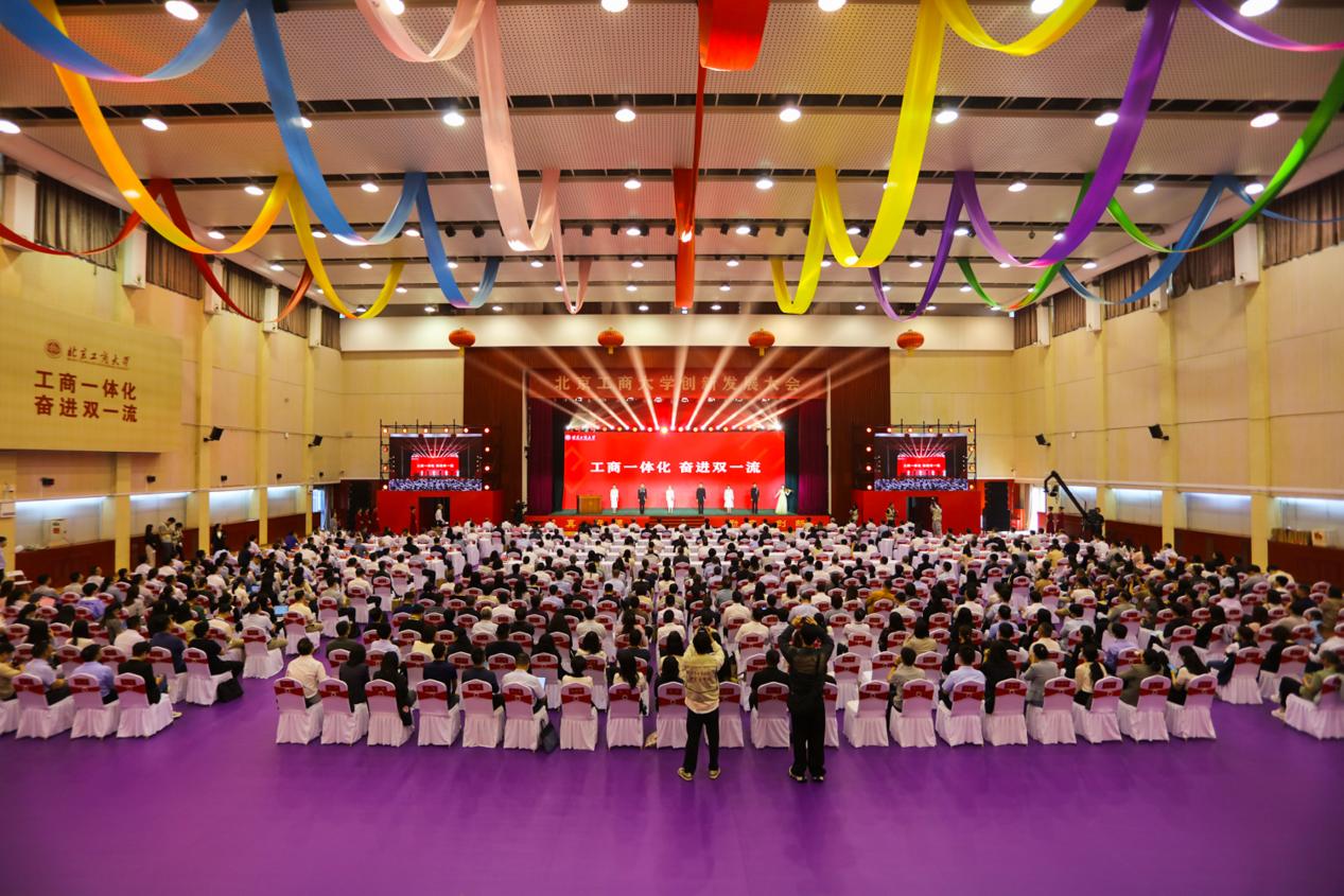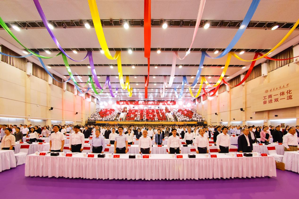6月15日,北京工商大学创新发展大会暨创建“双一流”学科高端学术大会在良乡主校区文体馆举行。大会以 “工商一体化,奋进‘双一流’”为主题,回顾学校发展历程,展示科技创新成果,谋划“双一流”学科蓝图。