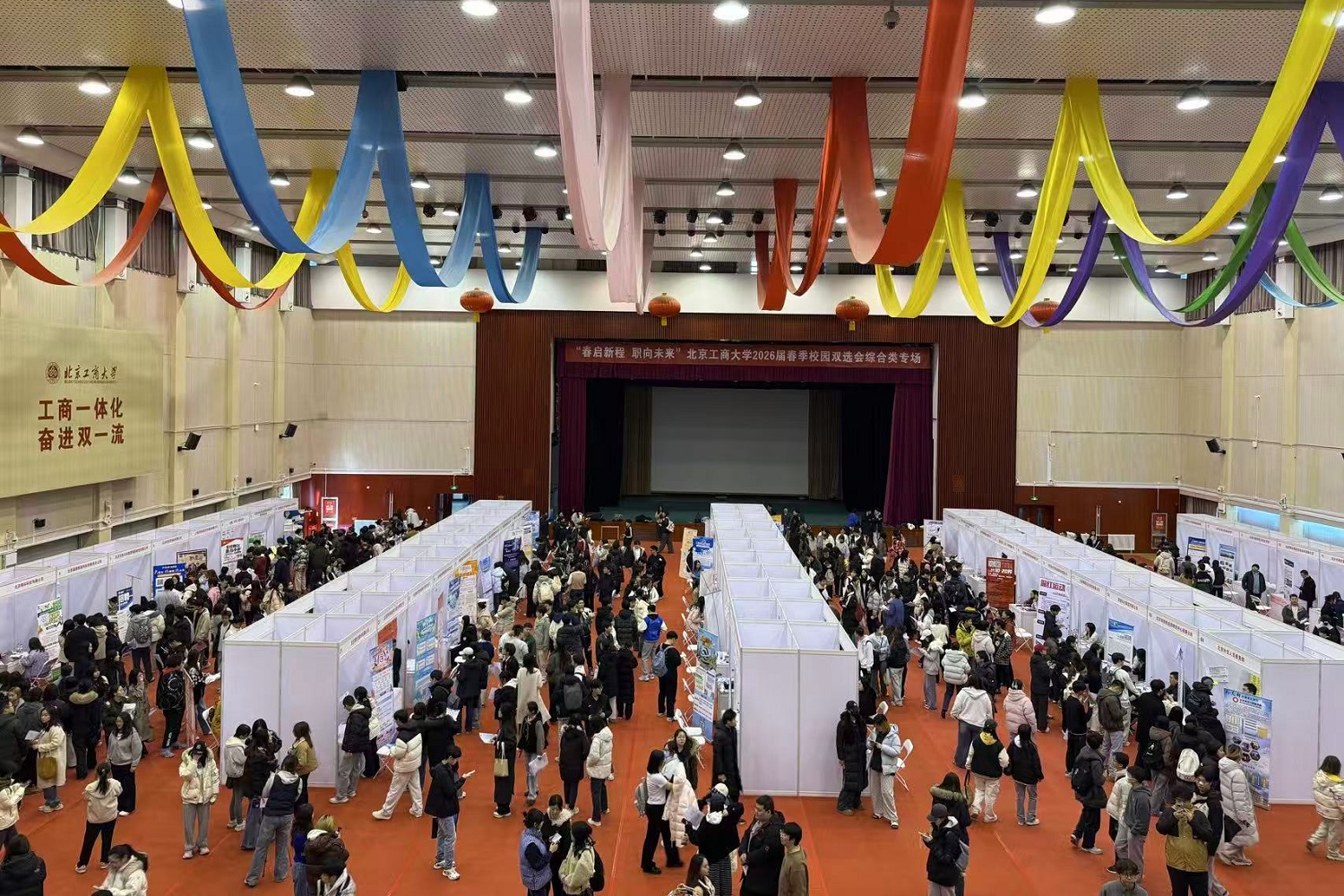 为深入贯彻落实教育部及北京市关于高校毕业生就业工作的决策部署,全力搭建毕业生与用人单位精准对接平台,3月11日“春启新程 职向未来”北京工商大学2026届春季首场综合类双选会在良乡校区举办。