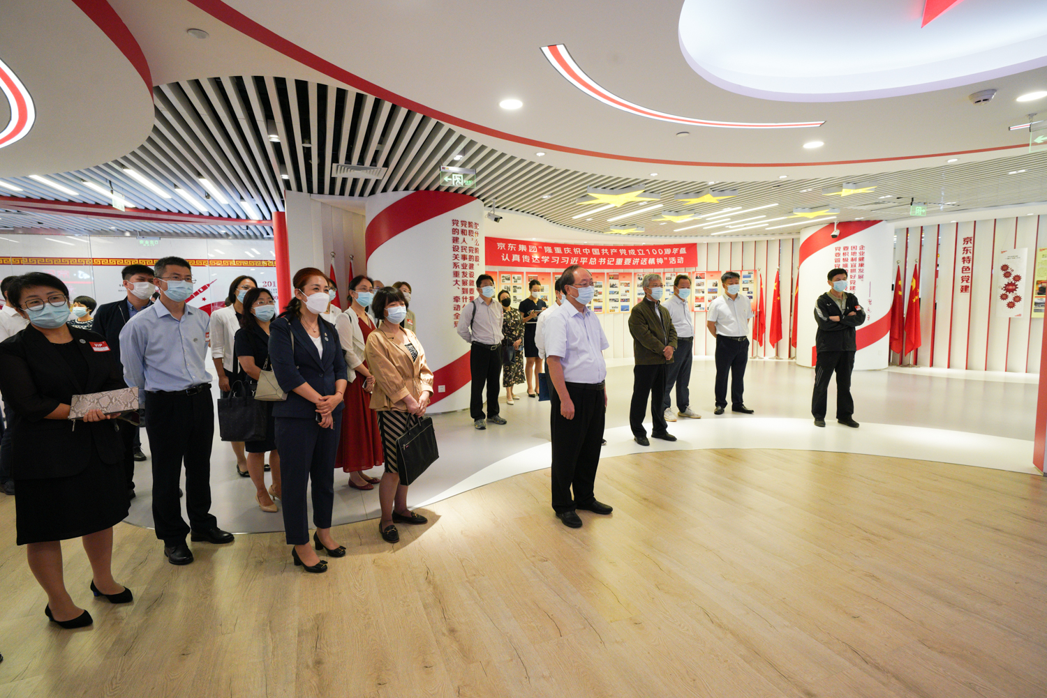 学校理论学习中心组成员(扩大)一行实地参观了京东集团总部,先后参观了党建展厅、文化展厅、总部沙盘、京东科技等,详细了解了京东集团产业发展历程、主要业务板块、物流体系运营模式等内容。通过现场解说、实景呈现和视频播放等多种形式,参观人员对京东电商物流仓储配送的新技术应用、消费大数据的实时动态捕捉与分析、企业文化融入社会责任的品牌塑造、党的建设在企业发展壮大中的引领作用等有了更清晰的认知和感悟,对中国经济发展和民营资本的作用有了更直观的体验。