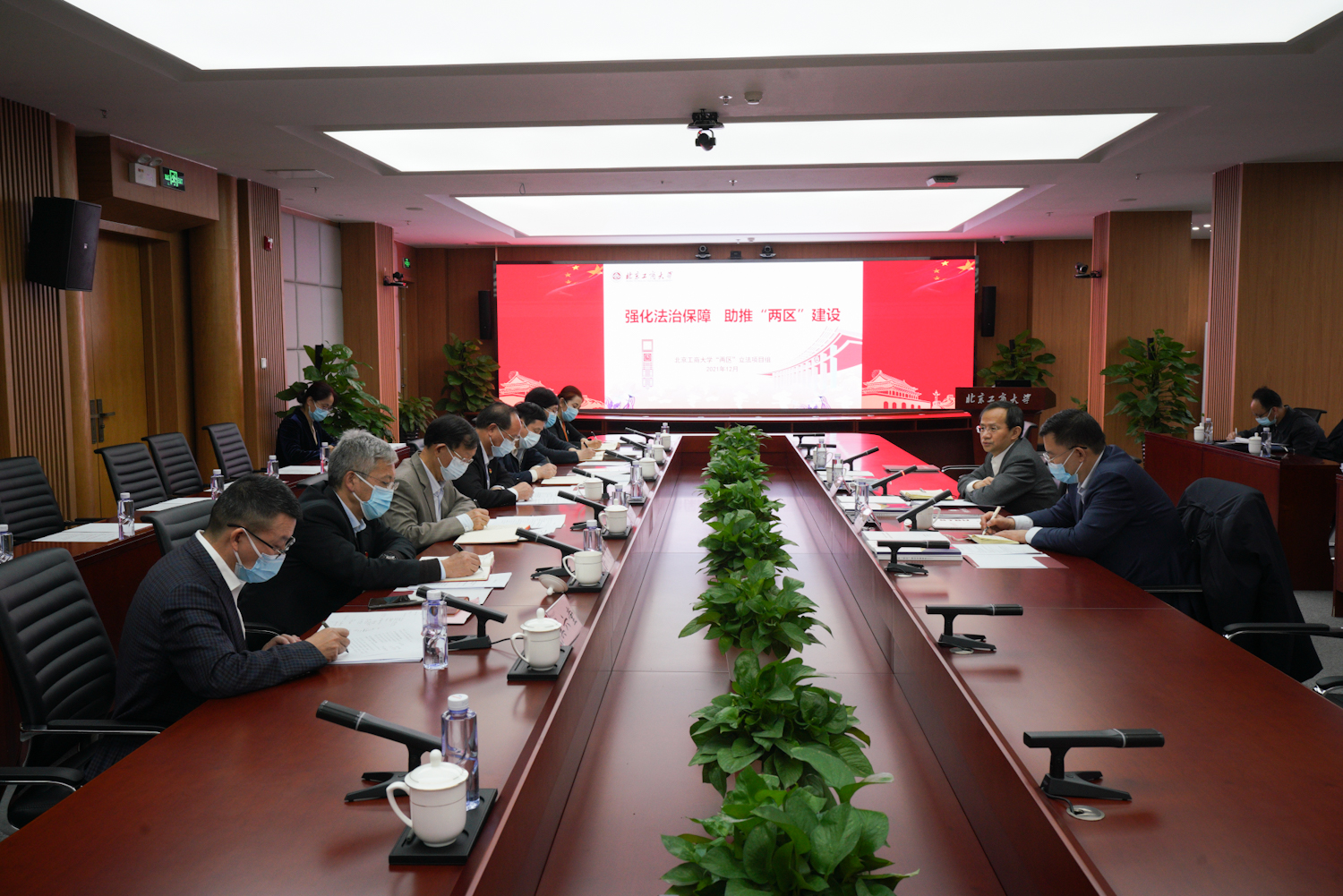 会上,殷勇副市长与我校“两区”体制机制改革研究团队座谈交流“两区”体制机制改革有关工作。学校“两区”体制机制改革研究团队负责人、法学院李晗副教授汇报研究工作情况,她围绕推进法定机构试点、设立新型研究机构、完善激励机制和容错机制、完善评估考核和监督机制等方面,针对“两区”管理体制机制创新中的难点和痛点问题进行阐述;并代表学校作《以首善标准推动“两区”“三平台”建设 打造服务北京“高校样板”》专题汇报,展示了我校服务“两区”建设等方面的多项示范性成果。