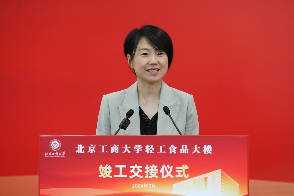 房山区区委常委、副区长靳璐在致辞中向轻工食品大楼的顺利交付表示祝贺。她指出在市教委的有力指导下,在驻区高校的持续努力下,良乡大学城的建设发展进一步加快。北京工商大学作为最早迁入良乡大学城的高校,自2004年进驻以来,不断发展壮大,轻工食品大楼项目是北京工商大学在良乡主校区建设布局中的一项重要内容,是学校人才培养、科技创新的重要承载地,大楼的竣工投用,标志着北京工商大学优势学科建设进入了新的发展时期,不仅将促进学校的内涵发展,也将为房山区创新发展注入新动力。近年来,北京工商大学已有多项科技成果在房山实现了转化,有力支持了房山区经济社会高质量发展,下一步,房山区将进一步深化校地合作,为北京工商大学提供更优质的服务,并全力做好产业项目的落地承接。