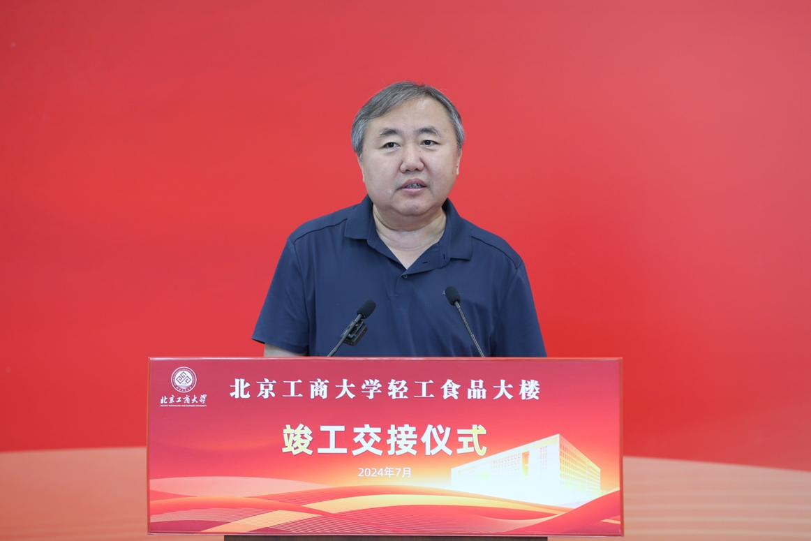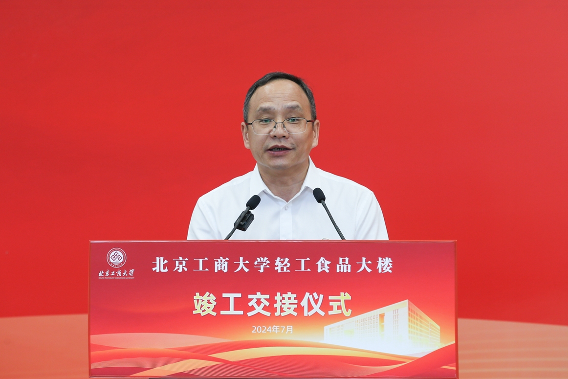 黄先开代表学校党委和行政,向长期以来关心和帮助学校发展、推动学校建设的市教育两委、房山区政府及良乡大学城的各位领导和同仁,向辛勤付出、精益求精的北京建工集团有限责任公司全体建设人员和参建单位,向与学校戮力同心全校师生员工表示崇高敬意和诚挚感谢。黄先开强调,轻工食品大楼的竣工投入使用,标志着学校在优化功能布局、拓展办学空间方面迈出了坚实的步伐,不仅为学校的教学科研提供了更加优质的环境和条件,也为学校高水平研究型大学建设奠定了坚实基础。黄先开提出,不仅要建好,更要用好轻工食品大楼,学校各有关单位要加快推进内部设施配置、尽快完成搬迁工作,继续秉承“求真、立德、勤奋、创新”的校训精神,突出商科、轻工和食品为主的办学特色,与首都发展同向同行。