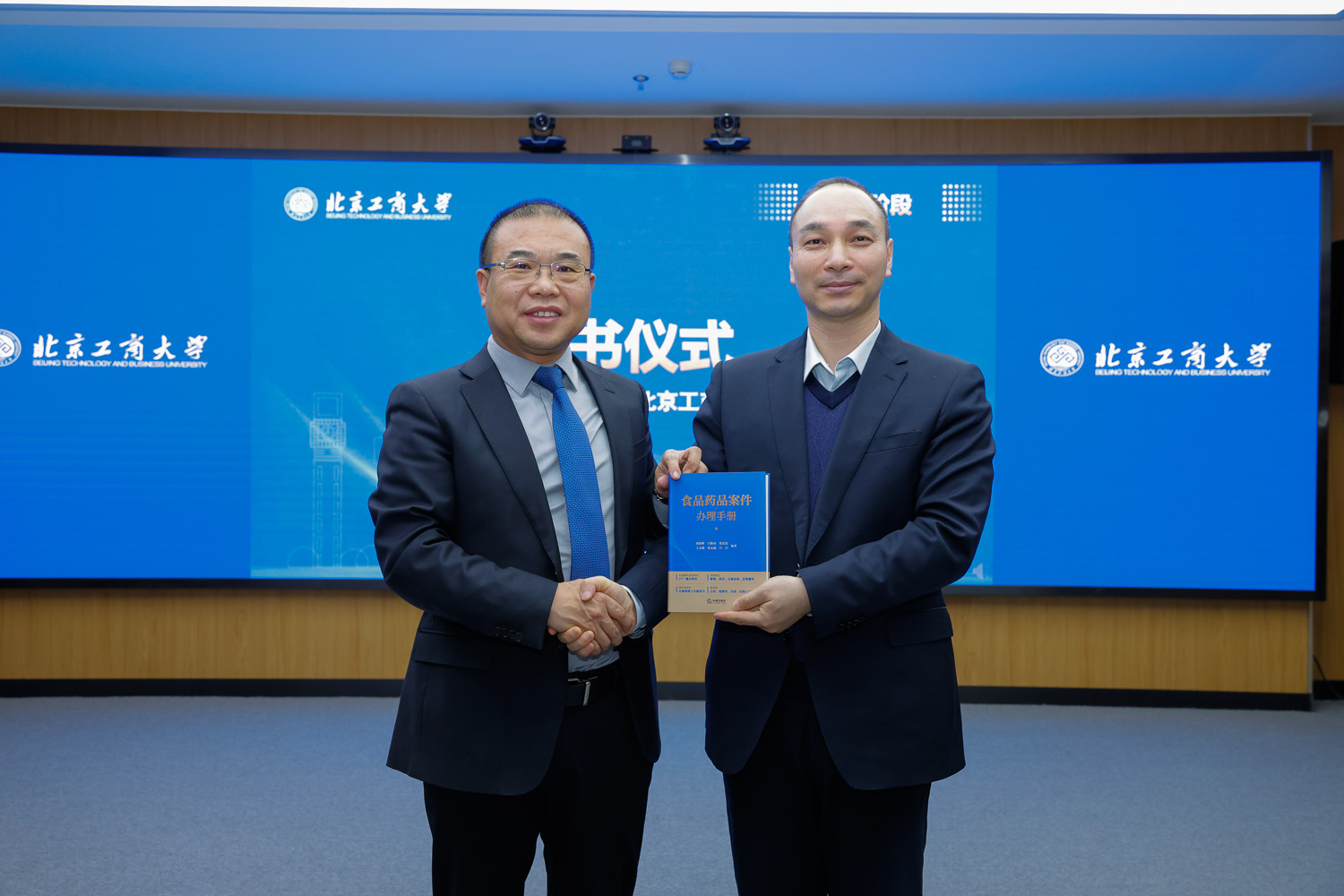 主旨报告后,举行赠书仪式。北京京都律师事务所高级合伙人、京都环食药知法律研究中心主任汤健彬向法学院赠送《食品药品案件办理手册》,陈敦代表法学院接受赠书。汤健彬代表京都律所发表了赠书寄语,表示将与我校深化合作,助力“法工融合”人才培养。