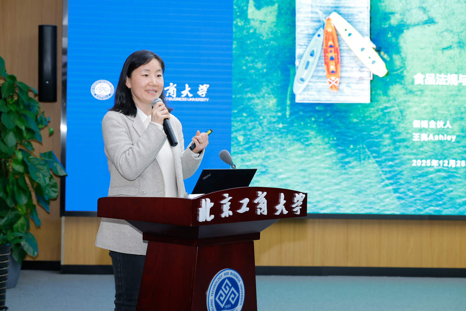 中国食品添加剂和配料协会副理事长马立田作专题报告。他结合行业实践,通过列举生动案例,详细阐释了专业判断与合规、要求的辩证关系。他指出,食品安全问题主要源于食品链污染、商业欺诈、食品防护三大途径。合规人才需具备产品与服务专业基础、法规标准知识、行业趋势洞察三大核心能力,通过理论到实践的层层递进,锤炼知识应用与团队领导能力。北京中医药大学人文学院教授、博士生导师、国家中医药发展与战略研究院岐黄法商研究中心主任邓勇系统解读药食同源物质的法律界定与范围。他提到,截至目前我国已发布4批共106种物质目录,其使用需遵循严格限定、用途规范、试点管理、地方特色四大规则。他指出,当前药食同源物质销售面临属性模糊、宣传违规等挑战,需构建全链条合规销售内控体系,高校应推进跨学科专业建设,联合企业、律所等构建联动育人机制,同时建立在职人员标准化培训体系。河北农业大学副教授,中国人民大学食品安全治理协同创新中心研究员孙娟娟结合十余年教研经验,提出从跨学科交流、跨领域联动、实践深入、域外借鉴四个维度推进人才培养。她强调,食品法学虽属小众领域,但需依托跨学科优势找准定位,通过案例式教学、实训基地建设、行业大会交流等方式,强化人才的法律应用与实践落地能力,同时兼顾专业深度与社会服务广度,普及食品安全科学与法律认知。我校食品与健康学院副教授、食品质量与安全系主任张明谈到,食品工业向科技型、智能化转型后,传统基础型人才已难以适配企业需求。他提出,人才培养需强化产品创新能力、数字化与智能化思维、法律法规素养三大核心能力,应当着力构建“食品科学+物联网+大数据+法规标准”多学科交叉课程体系,分层次融入AI通识与应用内容,开设“食品应用监管”微专业,并依托多个省部级科研平台提供全产业链创新创业锻炼。佰锡(亚洲)有限公司合伙人王亮结合国际合规实践,提出科学合规具有强制性、科学性、发展性、差异性四大特征,需覆盖全产业链管理。她指出,国际化合规需建立系统的自我诊断体系,合规人才需具备跨学科知识结构与国际法规解读、跨境合规应对能力。建议高校与企业共建实训平台,以真实案例推演提升人才实践应用能力,满足企业“走出去”需求。IFF大中华区法规负责人、高级工程师彭荣谈到,当前法规团队面临新人培养周期长、理论与实践脱节等痛点。法规人才需具备法规条文理解、标准转化、合规风险控制、跨部门协同沟通、行业前瞻五大能力,倡导构建“食品科学+法学+实践实训”三位一体的课程框架,依托行业协会引领,联合企业提供真实合规案例与操作平台,强化持续学习能力。