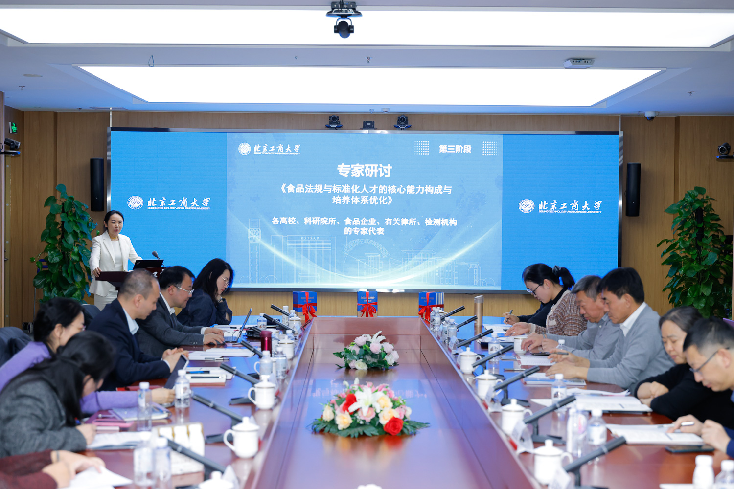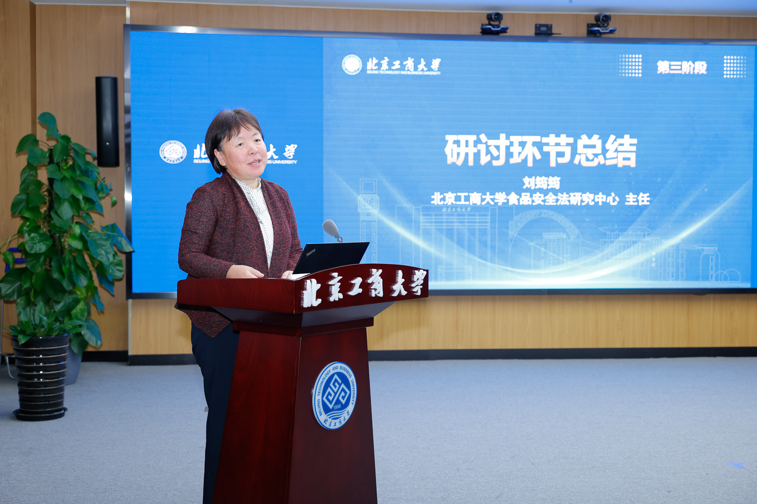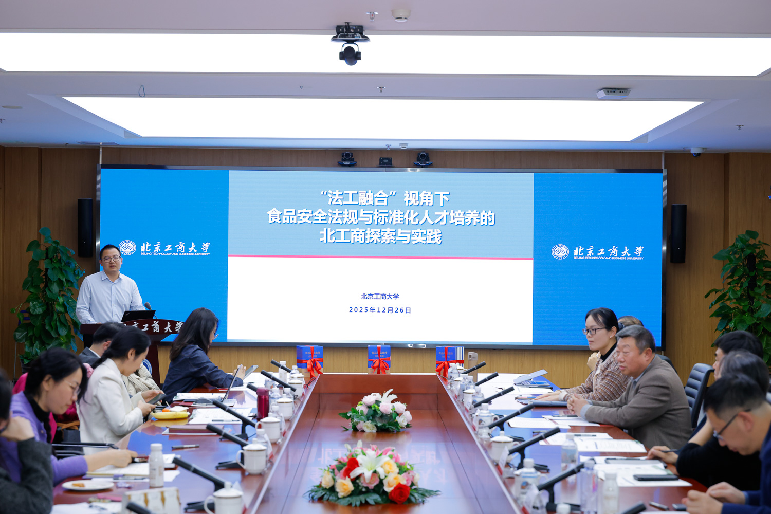 国家食品安全风险评估中心标准三室主任张俭波在致辞中表示,食品安全标准是落实“四个最严”要求的根本前提与重要基础。近年来,在国家卫健委的领导下,中心着力强化多部门、多领域协同的标准制修订工作机制,推动我国食品安全标准体系持续完善。我国作为国际食品添加剂法典委员会主持国,正深度参与并积极推动相关国际标准制定工作。随着食品新技术、新工艺、新业态的涌现,应对新型食品安全风险,迫切需要既懂法规又通技术的“法工融合”型复合人才。他谈到,北京工商大学作为国家卫健委食品安全与营养健康“1+2+8”战略合作机制成员单位、国家食品安全风险评估中心技术合作中心,去年还成功入选国家卫健委食品安全风险评估与标准研制特色实验室,在食品安全标准研究等方面做出显著贡献。他希望以此次研讨会为契机,进一步深化双方在人才培养领域的合作,推动更多具备跨学科背景的复合型人才参与国家食品安全政策、法规与标准的转化与落实工作。