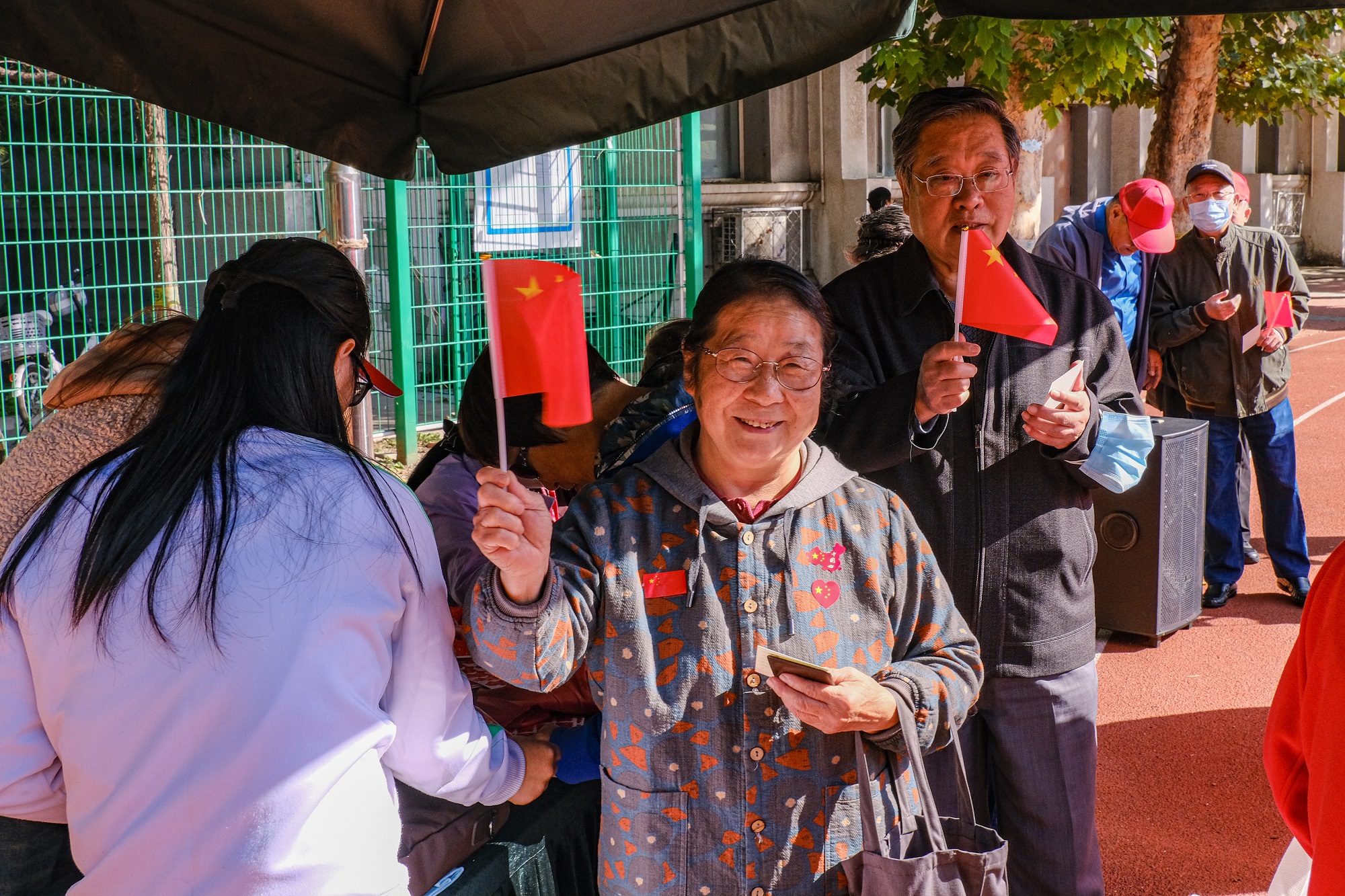 活动当天,阳光明媚,学校操场上人声鼎沸,彩旗飘扬。上午10时整,随着一声整齐的号令,集体健步走活动正式拉开帷幕。老同志们贴着统一的国庆图标,脸上满是自豪与喜悦,他们随着激昂的红歌旋律,手举红旗,迈着坚定的步伐,沿着操场缓缓前行,每一步都踏出了对过往岁月的深情,每次摆动都舞出了对新时代的美好憧憬,他们用这份独有的方式来表达自己对祖国的深情祝福与无限热爱。