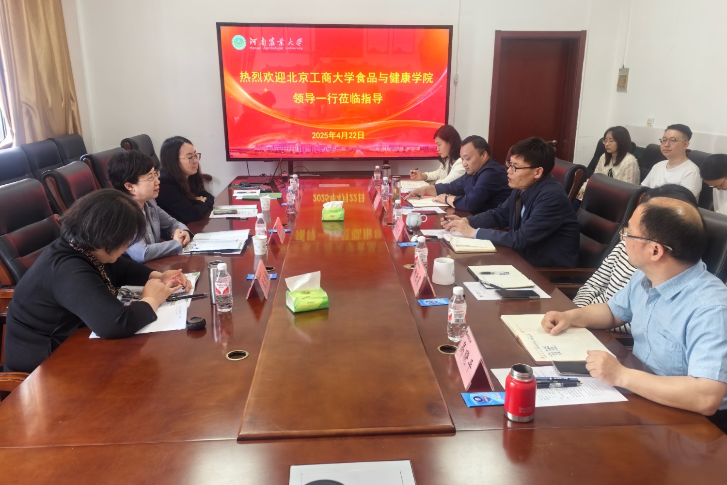 在河南农业大学食品科学技术学院,院长黄现青详细介绍了学科建设成效与研究生培养路径,双方就专业建设、对外合作等展开交流。