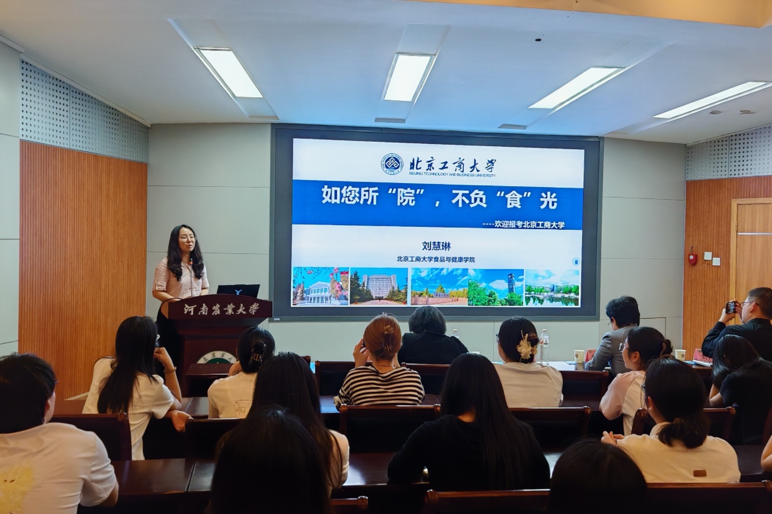 宣讲与调研团队先后赴河南工业大学、郑州轻工业大学、河南农业大学三所高校,面向食品及其相关专业的本科生开展研究生招生宣讲。通过宣传视频、PPT讲解等形式,系统介绍我校区位优势、学科特色、学院师资力量、科研平台及研究生奖助政策,并针对培养模式、报考流程等热点问题现场答疑,激发优秀考生的报考意愿。