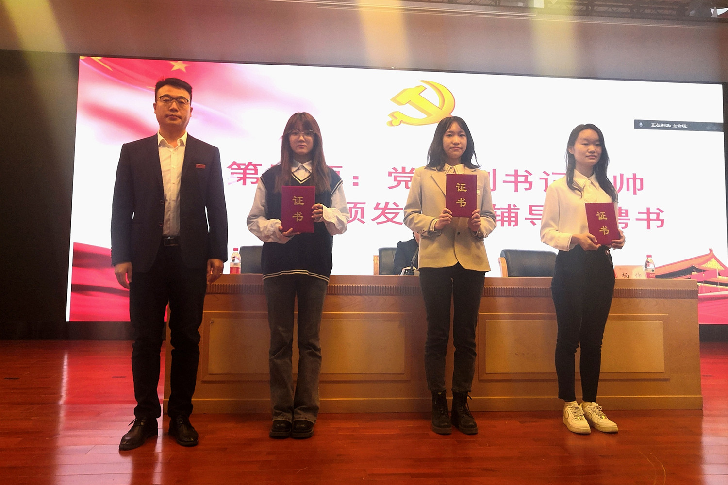 学院党委副书记、分党校副校长杨帅为党校兼职辅导员颁发聘书。