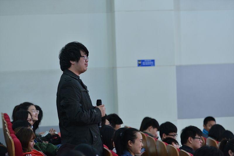 杜老师从如何看待问题入手,通过同学们熟悉的事例和周易中的阴阳,告诉同学们要辩证地看待问题,从两方面进行分析。他简要介绍了周易中的八个基本八卦和六十四卦,结合周易的相关内容,着重讲解了大学生应如何培养自己在生活、学习和情感等方面的思想道德素质。他建议同学们在生活中要养成早睡早起的良好习惯,要控制和调节好情绪,并能积极面对和克服困难。在学习中,杜老师也引用了《周易》中的内容,倡导同学们要尊重师长,友爱同学。针对大学生该怎么谈恋爱的问题,杜老师也结合自己研习周易的感悟分享了自己的看法。