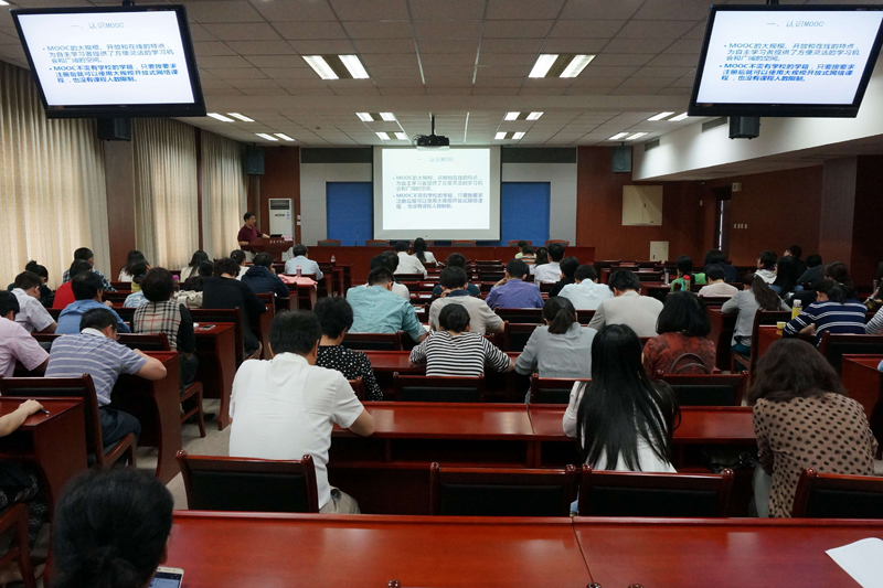 施枫主任以“慕课与翻转课堂”为题,对这种新近涌现出来的在线课程模式进行了全面解读。施主任从慕课(MOOC)起源的背景和重要意义讲起,指出MOOC是高等教育领域最为深刻的技术变革,之后就慕课的特点和三大平台进行了细致的讲解和对比。